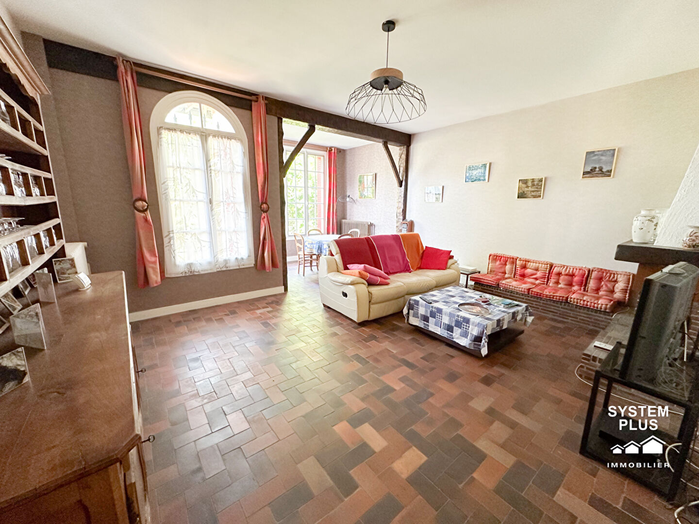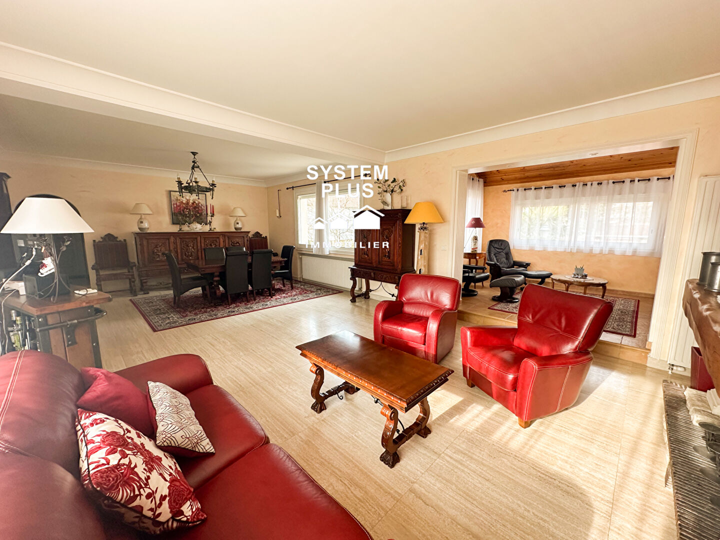 Au rez-de-chaussée, vous trouverez une entrée, un vaste séjour lumineux , une partie salon avec poêle à bois, une partie salle à manger avec c...