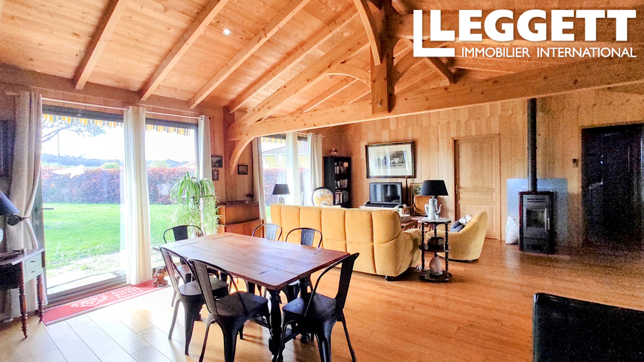 Bâtie sur un terrain de 1500 m2 clos dans un environnement reposant ,vous serez sous le charme de cette maison de plain -pied en ossature bois .Vous découvrirez de beaux volumes : séjour de 40 m2 avec poele à granulés, cuisine de 13 m2, deux chambres, salle d&...