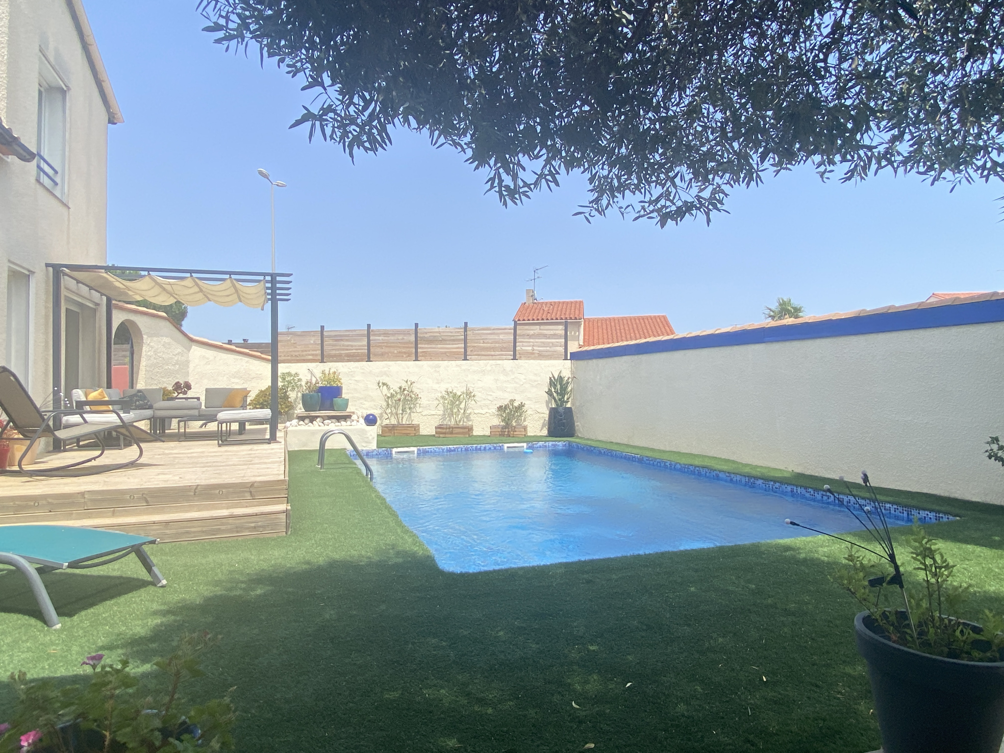 Maison de ville 3 faces avec terrain et piscine enterrée .