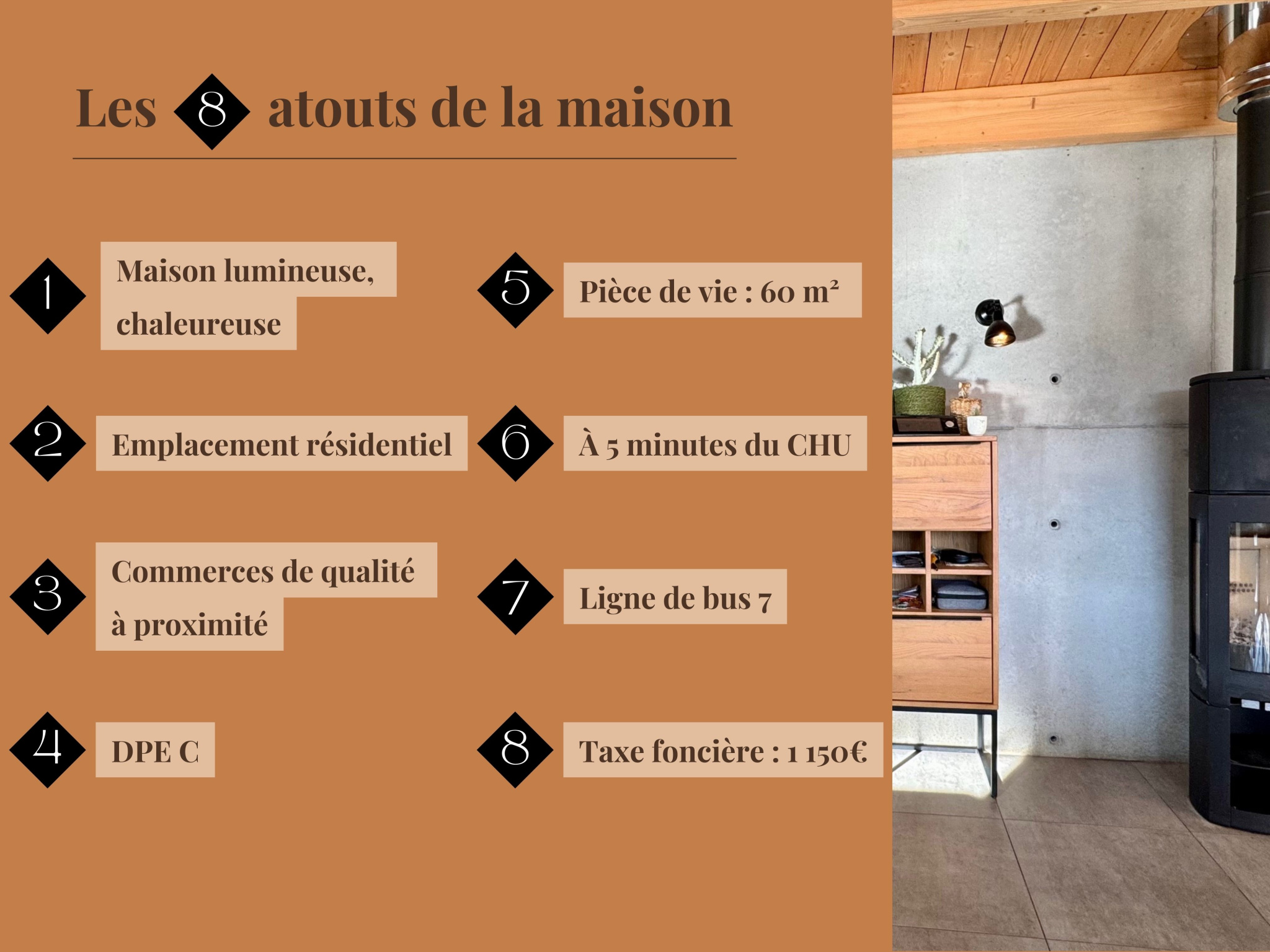 Nuances Immobilières vous propose, en exclusivité, une maison contemporaine de 140m2, à proximité du CHU à moins de 5 minute.