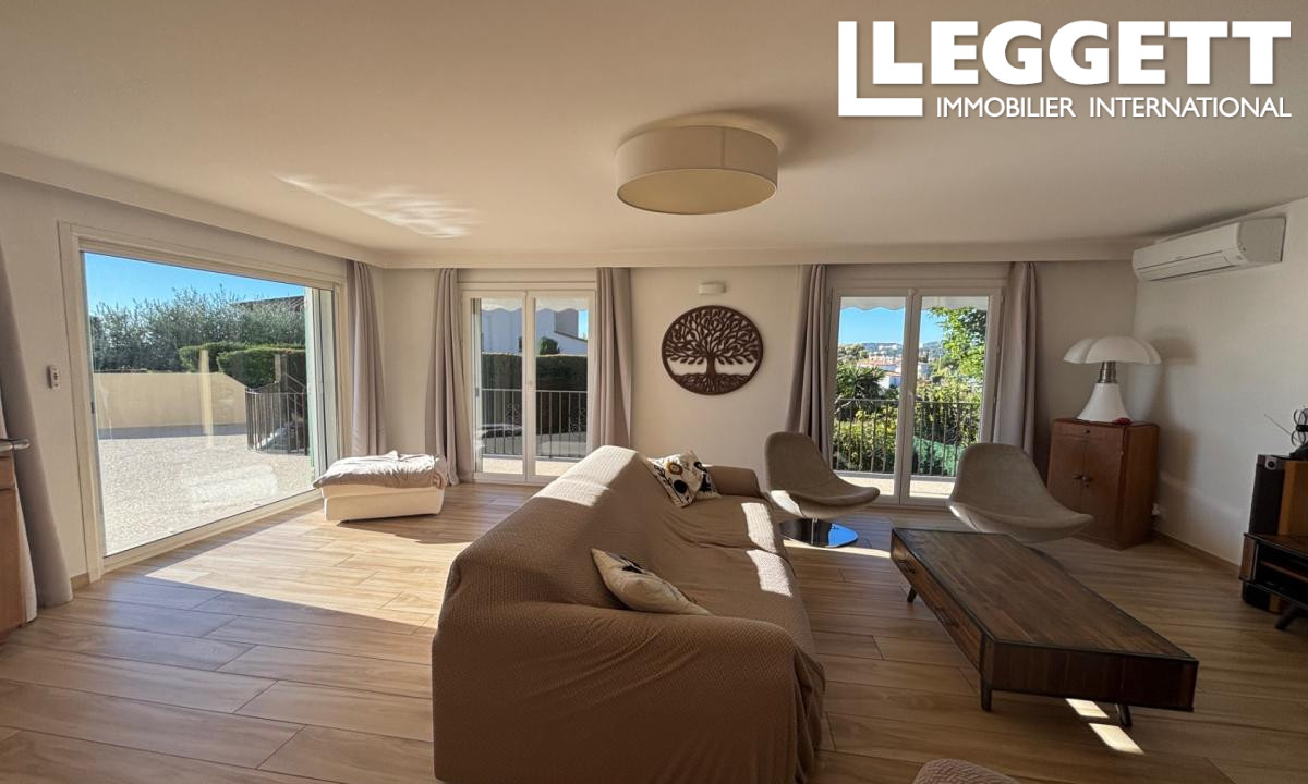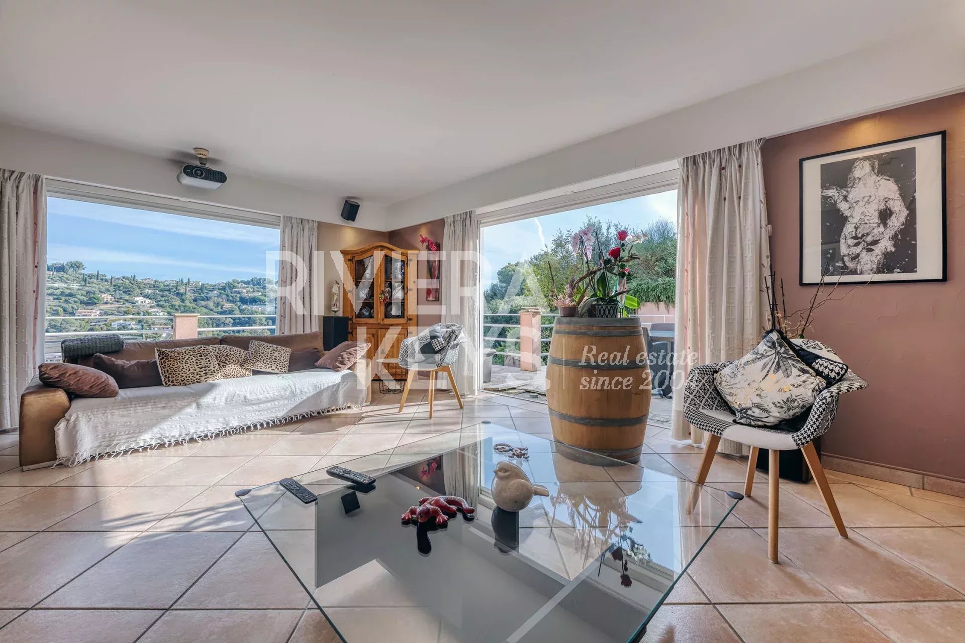Cagnes sur Mer proche du musée Renoir, superbe villa californienne aux prestations intérieures soignées et irréprochables, offrant une vue panoramique mer, ville, château et collines environnantes.