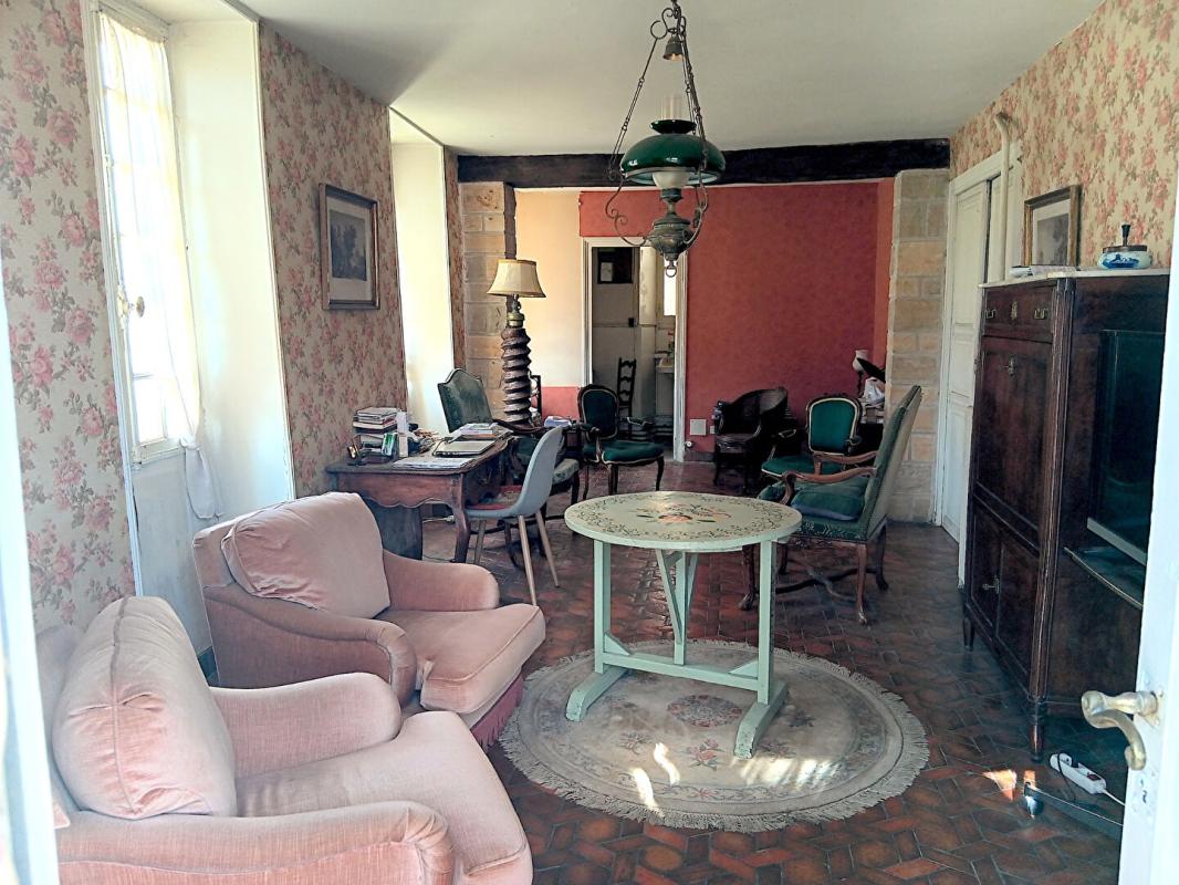 Salon de 22m² avec cheminée, salle à manger ouverte sur le jardi...