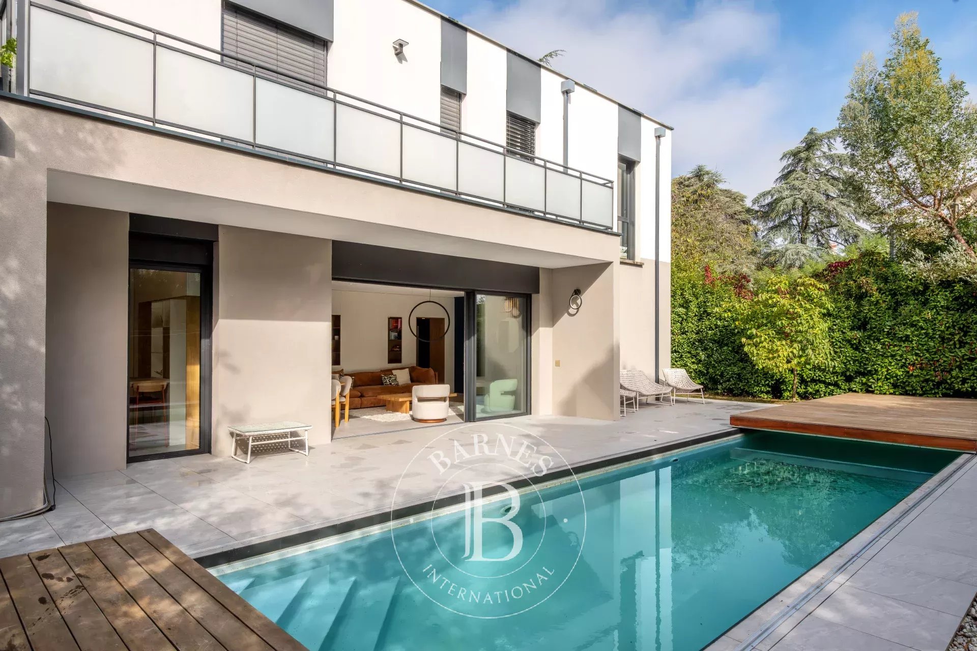 Caluire & Cuire / secteur résidentiel de Vassieux. Au calme, superbe maison contemporaine et familiale de 165 m2 avec terrain clos de 540 m2. Vaste pièce de vie carrelée de 51 m2 avec cuisine USA et cellier-buanderie, une suite parentale de 23 m2 avec sa s...