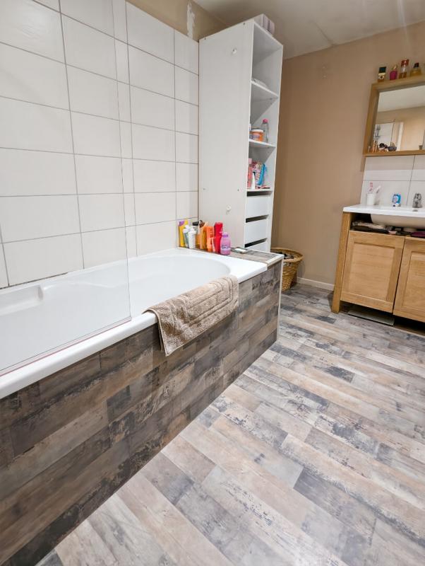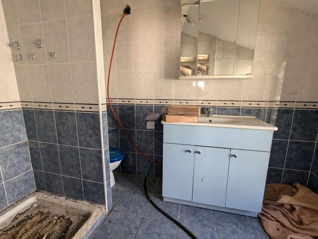 D'une cuisine aménagée, une salle à manger / salon, salle de bain, wc