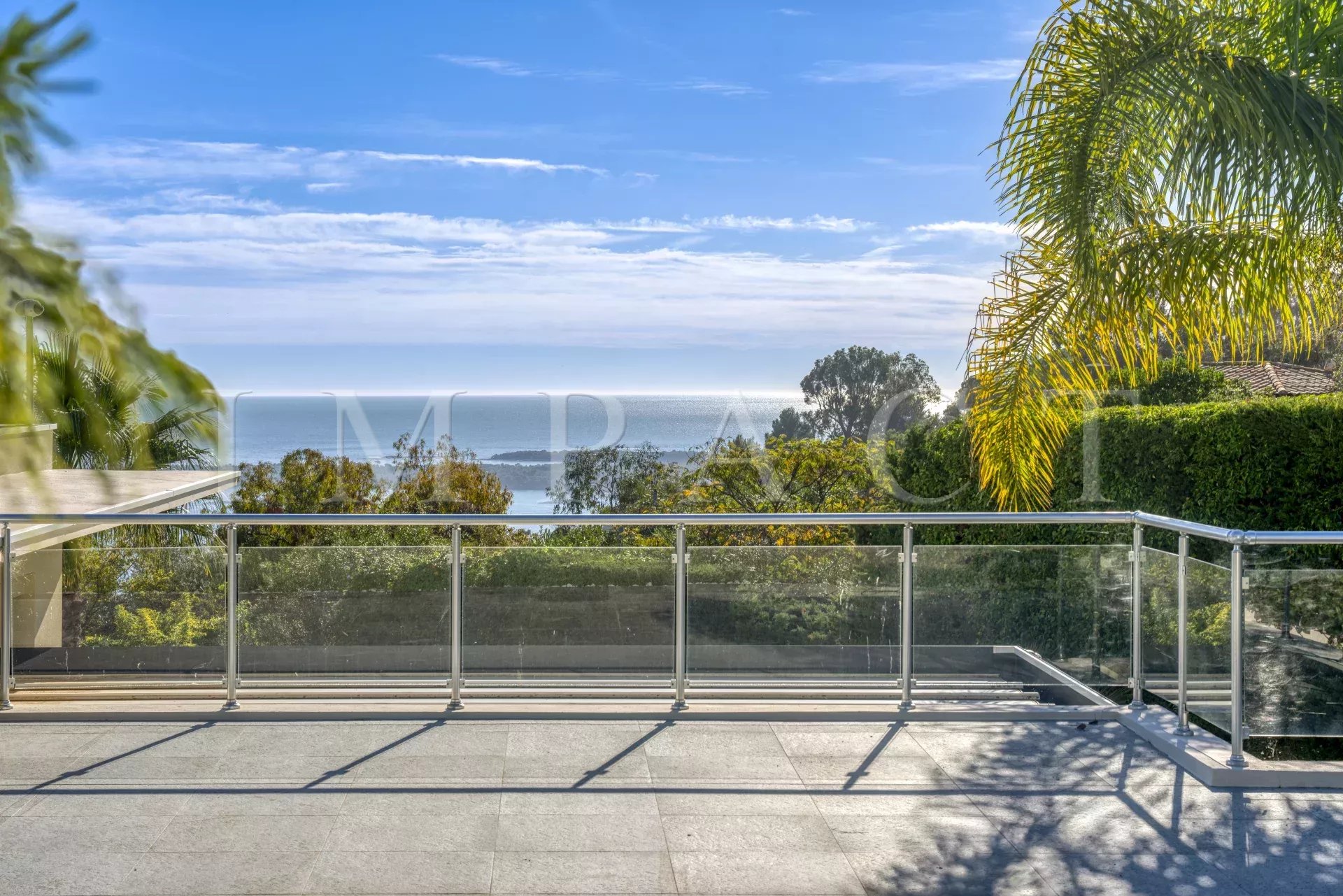 Villa baignée de lumière à l'architecture contemporaine située sur les hauteurs de Cannes, bénéficiant d'une magnifique vue sur le Cap d'Antibes, et les montagnes bénéficiant d'un calme absolu.
