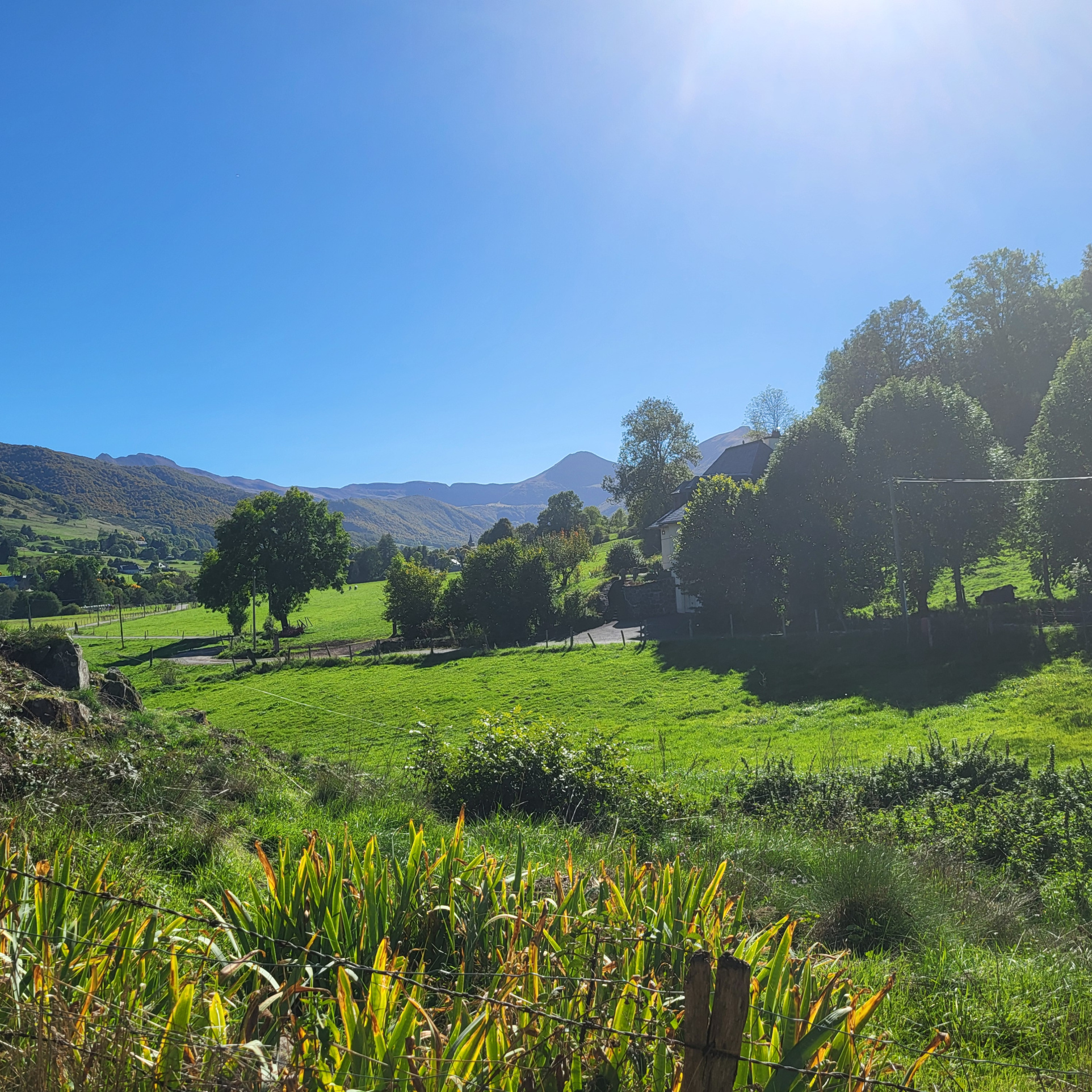 Vue imprenable sur le Puy-Mary, maison avec grange, étable, ancien four.