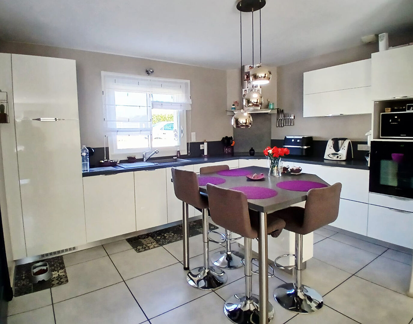Composée de plain-pied d'une grande et lumineuse pièce de vie avec une cuisine ouverte (neuve), d'une...
