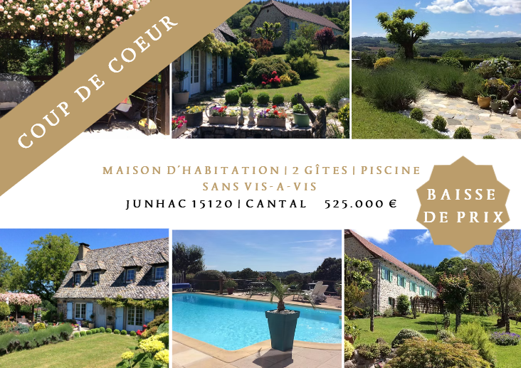 En exclusivité chez Côté France Immobilier : Offre exceptionnelle ! Magnifique propriété à vendre dans la campagne du Cantal, 3 minutes du village de Junhac.