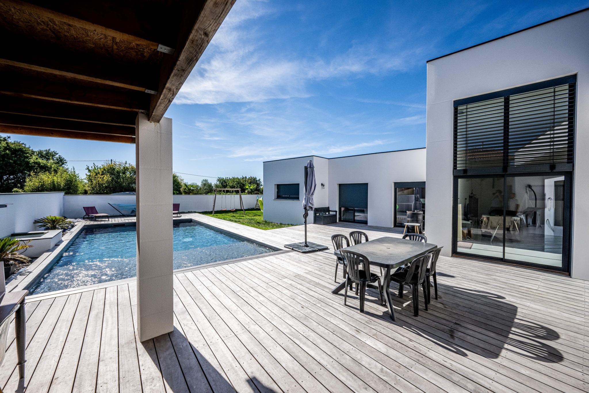Implantée au bout d'une impasse sans vis à vis avec une vue dégagée sur la campagne et les Pyrénées.