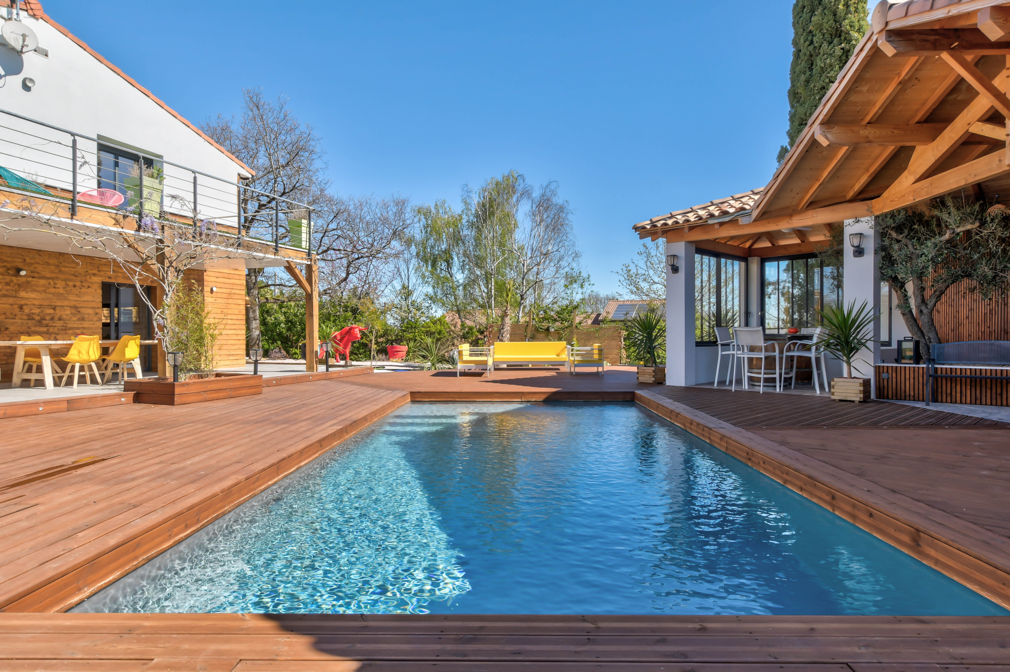 À Castelmaurou, à 5 minutes de Saint-Jean et aux portes de Toulouse, cette villa T6 de 242 m2 offre un cadre de vie exceptionnel sur un terrain arboré de 1766 m2, sans vis-à-vis.
