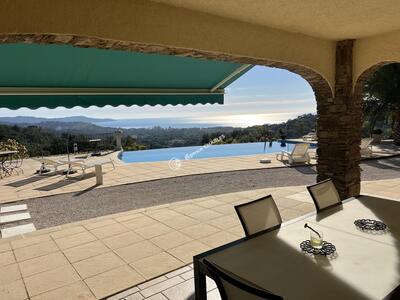 SITUATION UNIQUE pour cette VILLA de 9 pièces (206 m2 habitables) nichée dans un espace boisé classé, AVEC VUE PANORAMIQUE sur la mer et les Iles d'Or. Terrain de 2,2HA (22 000 m2) parfaitement aménagé. PISCINE 6x12 à débordement. 3 terrasses (100 m2). Do...