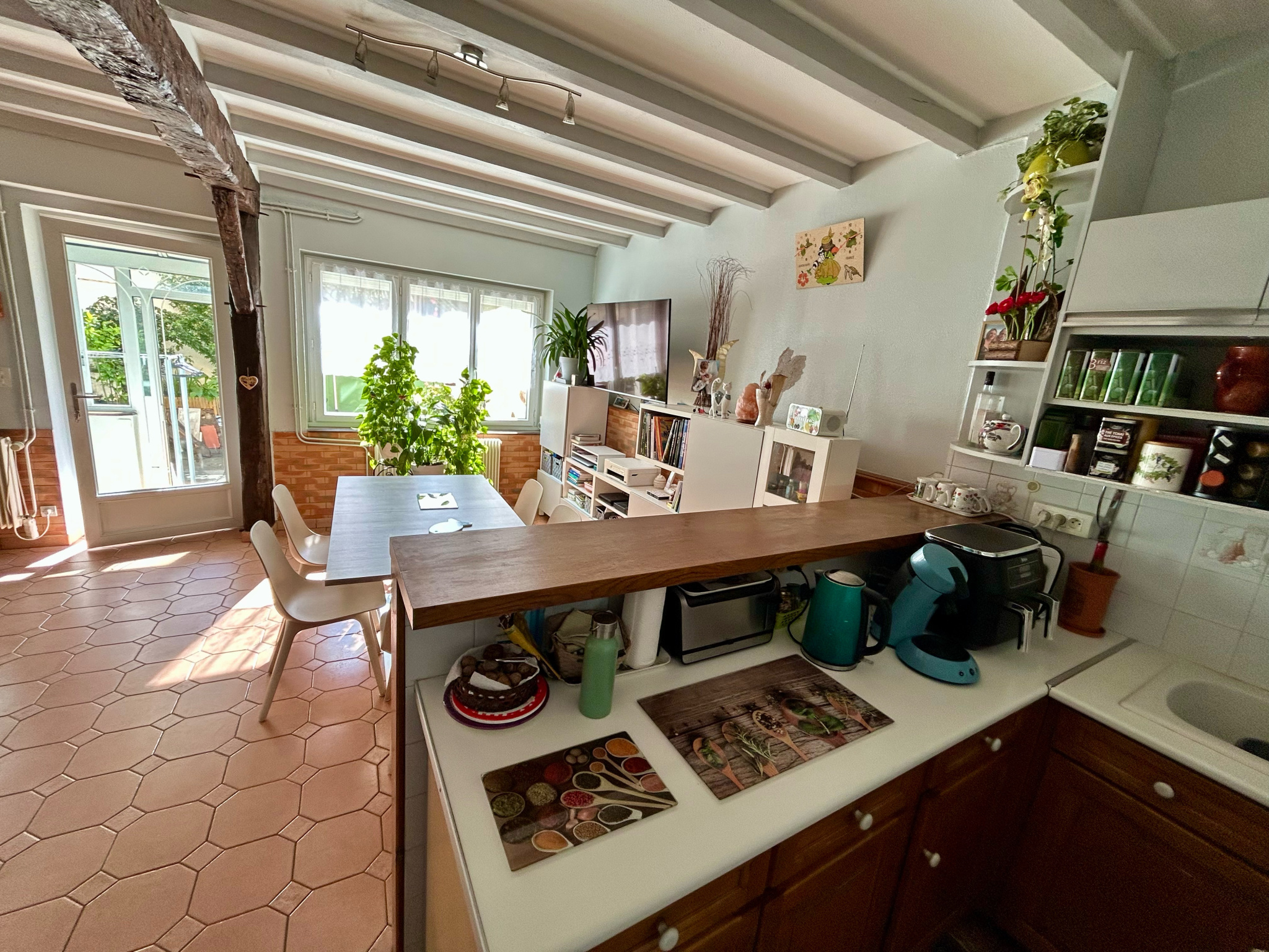 Les pièces de vie sont de plain pied et donnent sur la véranda et le jardin.