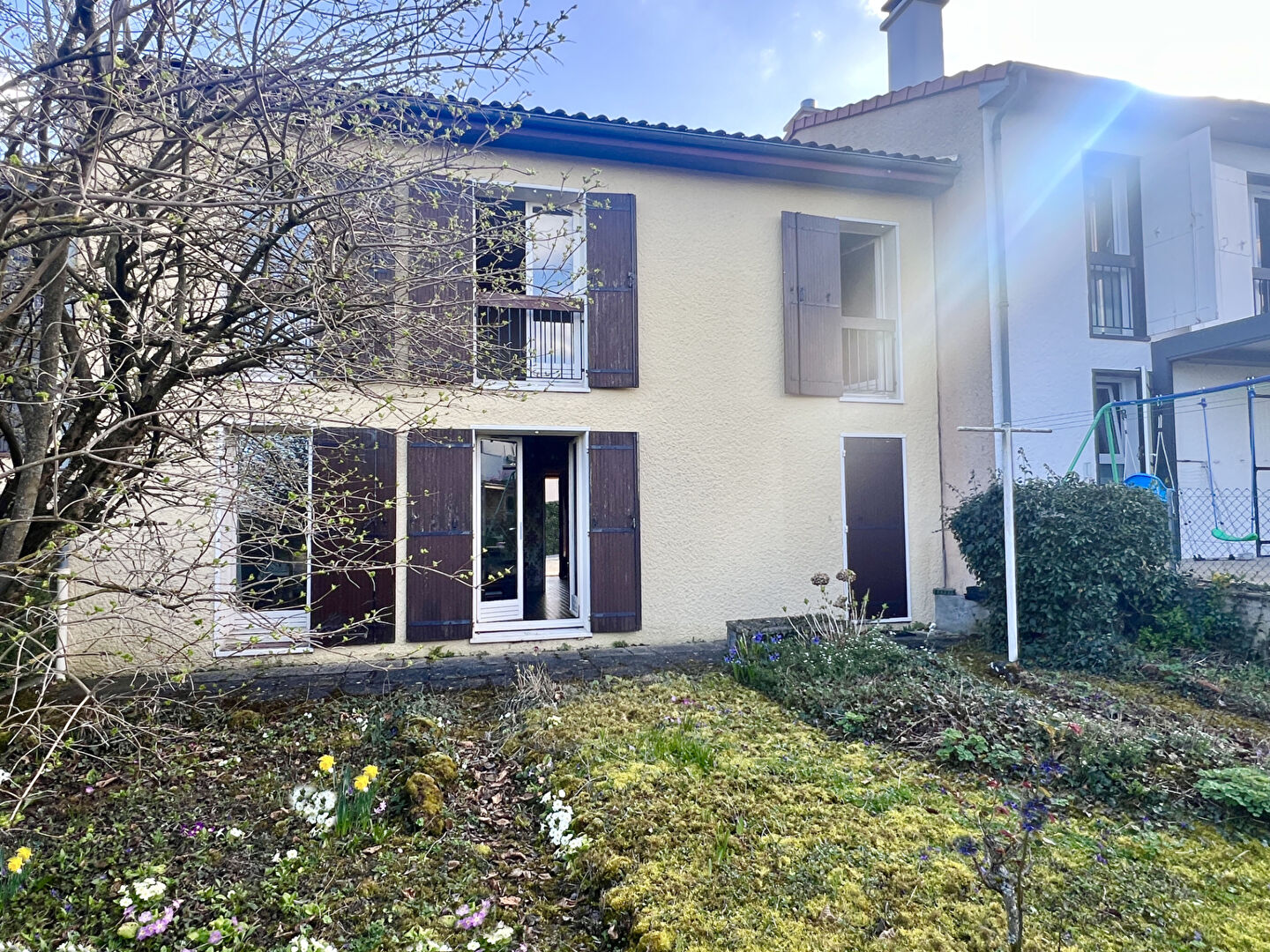 Idéalement placée, proche de toutes les commodités et au calme, cette charmante maison de ville de type 4 se compose: