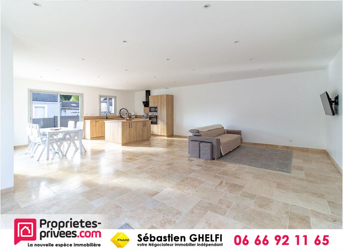 belle maison contemporaine de plain pied- grande salle de vie d'environ 60 m² avec cuisine entièrement équipée- 3 chambres -wc - salle de bain avec baignoire...