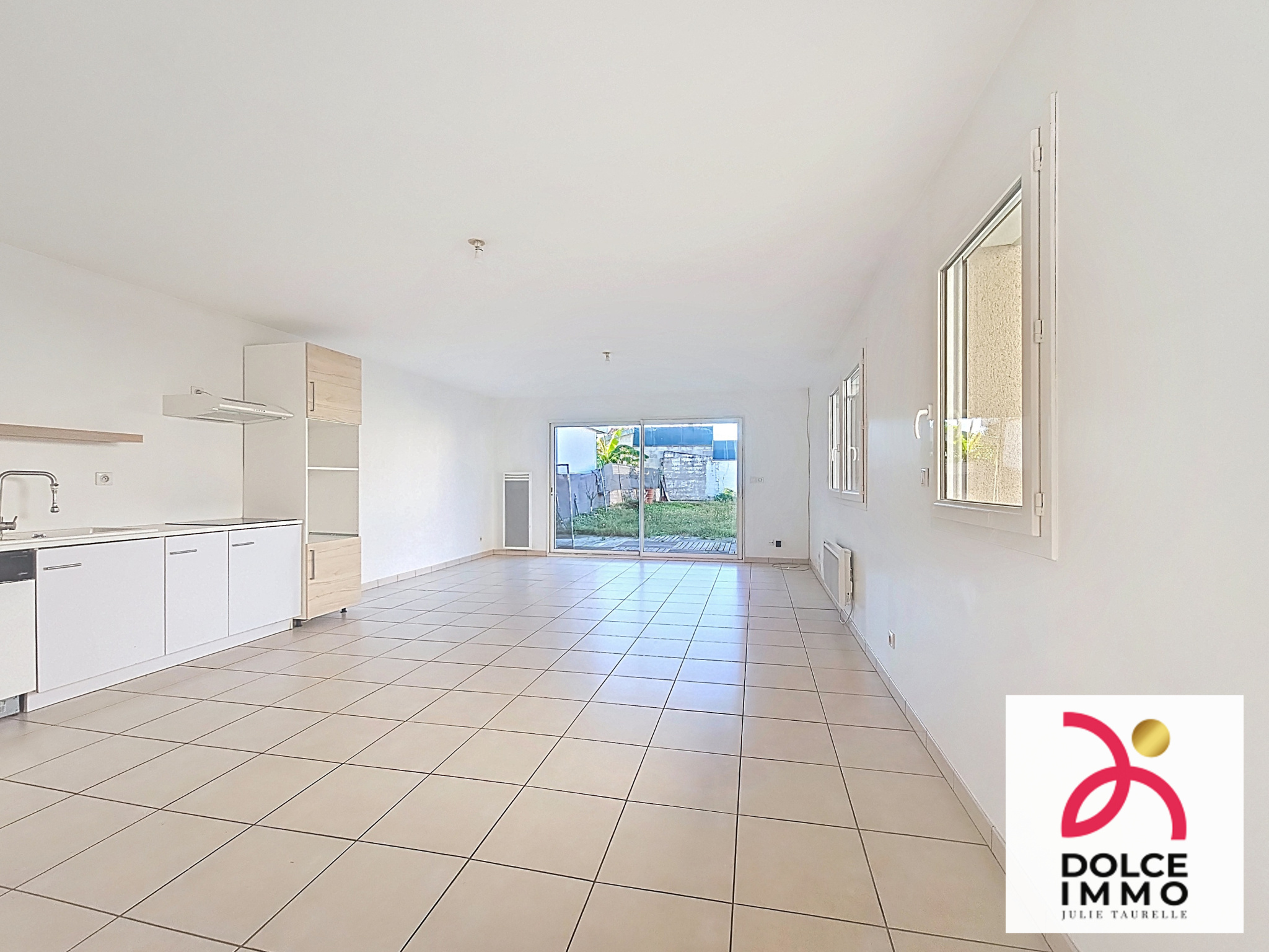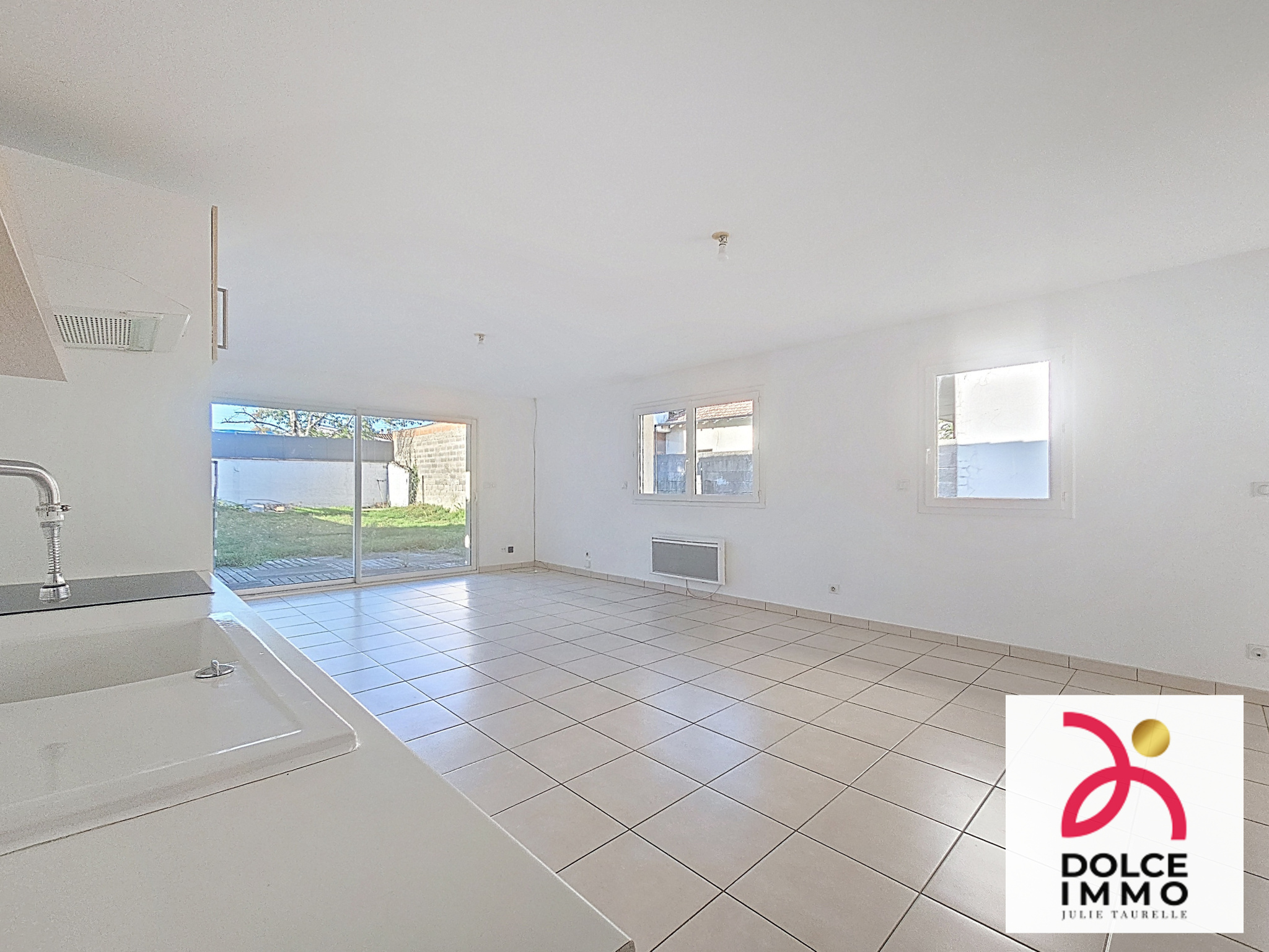 La maison est composée d'une entrée, une grande cuisine aménagée, équipée, un séjour lumineux de 64 m² ouvert sur le jardin.