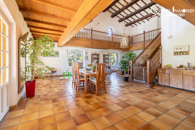 Magnifique construction de 1983 d'une surface totale de près de 400 m² et une surface habitable de 280 m² très agréable par son exposition, sa vue, son aménagement intérieur, le quartier.