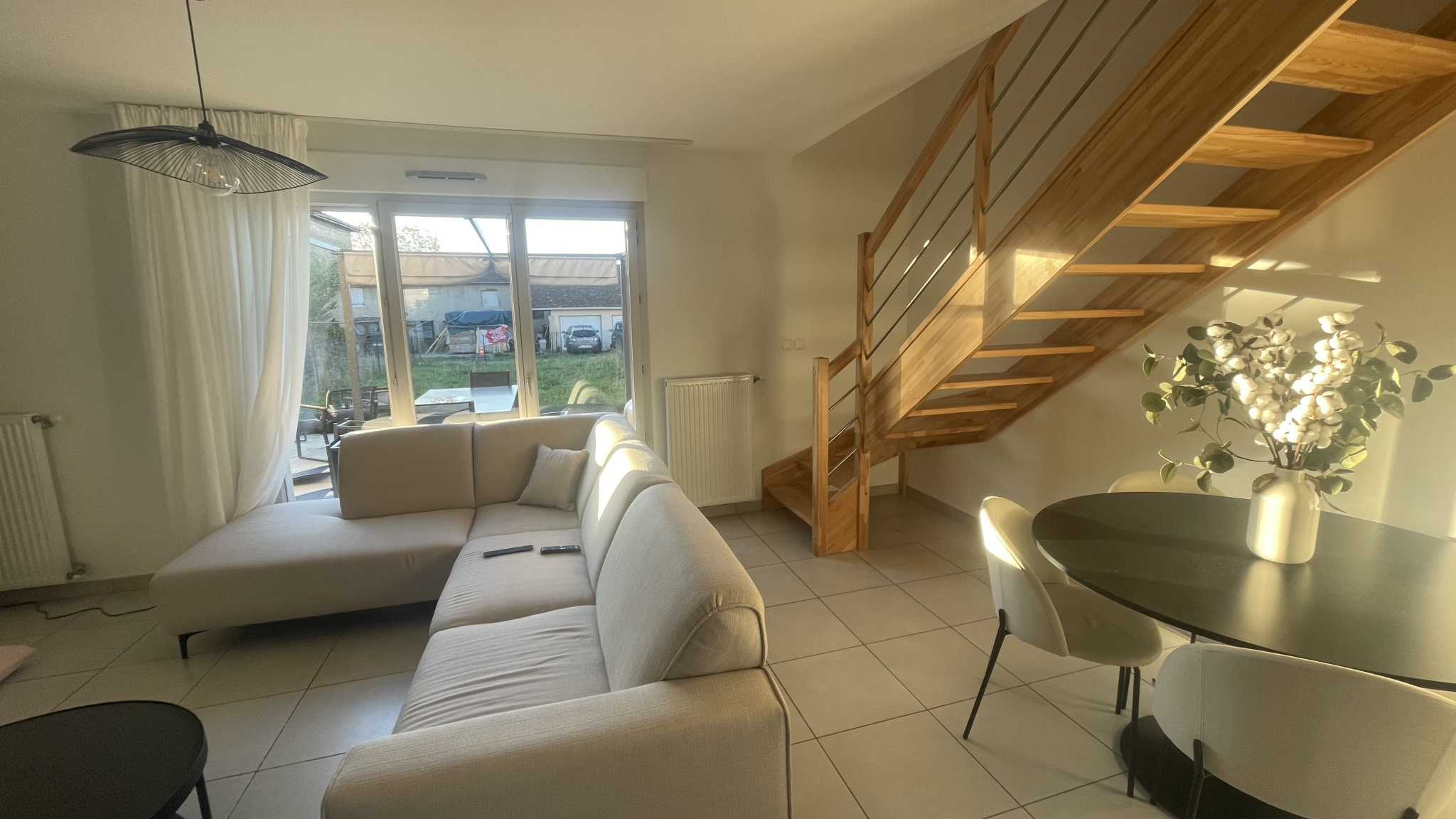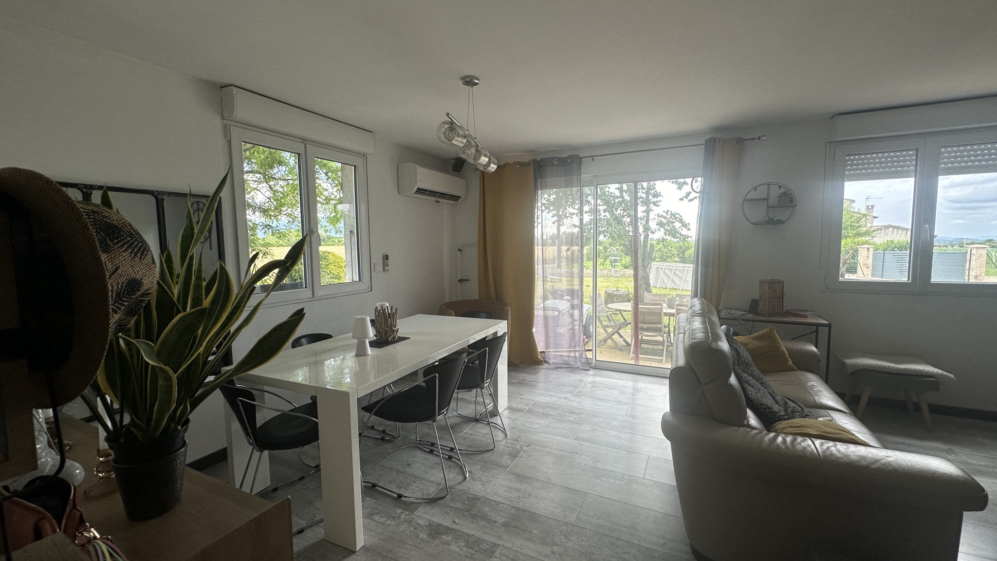 EXCLUSIVITÉ à Chabeuil, maison récente de 2022, mitoyenne d'un seul côté, offrant 80,5 m2 habitables sur un terrain clos de 250 m2, dans un environnement calme et à proximité immédiate des commodités.