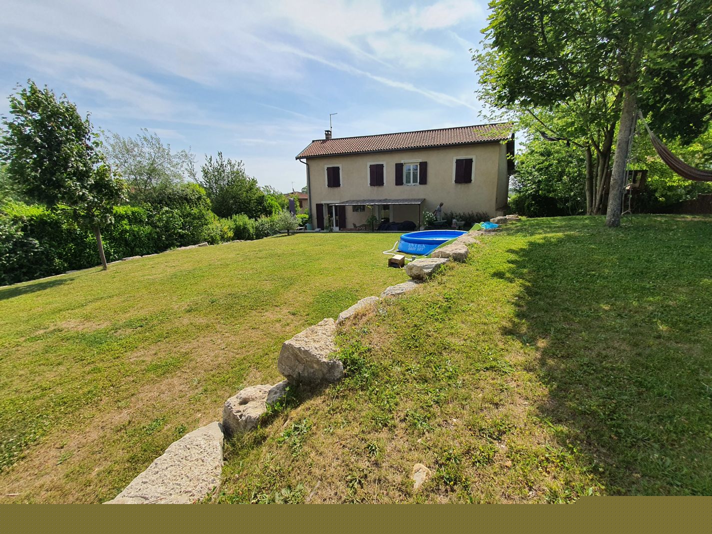 Fiche Id-177623 : Proche CHALAMONT, 3 mn, dans un hameau, au calme, maison mitoyenne, surface hab 106 m² environ, comprenant: une cuisine meublée avec accès véranda, un séjour/salon, deux chambres, une salle de bain/WC, une salle d'eau/WC, une buanderie, ...
