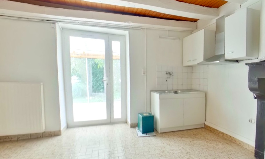 entrée par une grande véranda, coin cuisine et séjour avec son ancienne chemi...