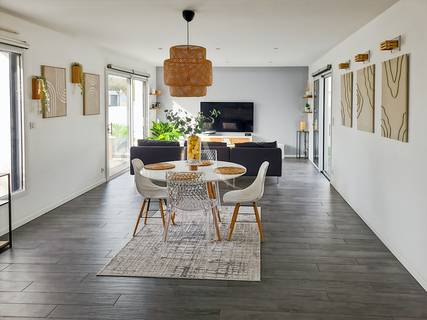 Située dans un cadre calme et verdoyant, à seulement quelques minutes du centre de Challans, cette maison de plain-pied entièrement rénovée entre 2023 et 2024 offre confort, modernité et tranquillité.