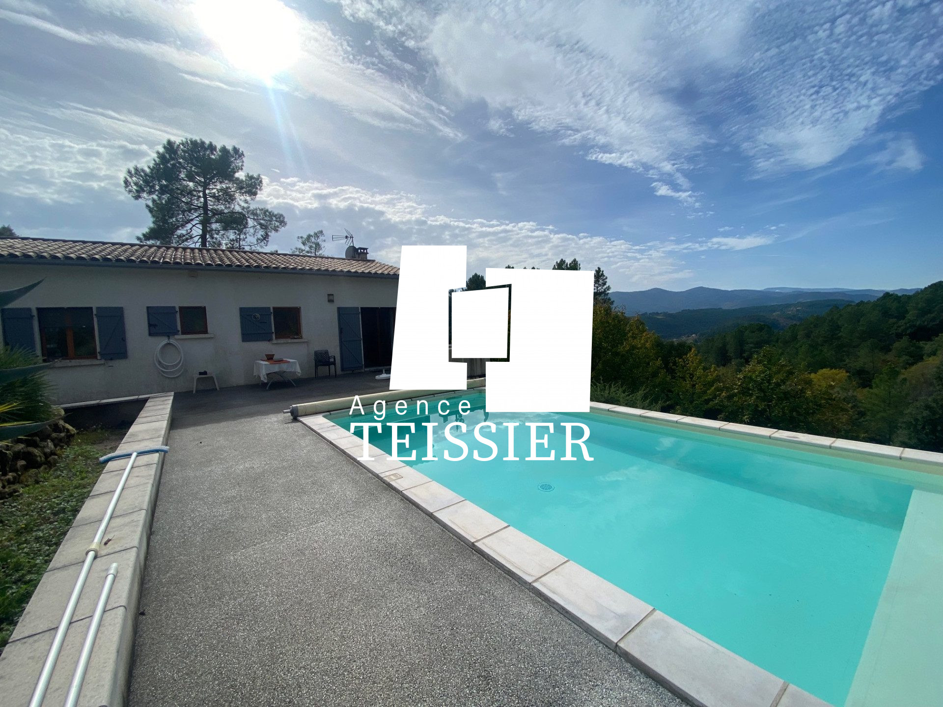 Exclusivité 07140 Chambonas - Villa de plain pied A 5 minutes des Vans, dans un très bel environnement s'ouvrant sur une très belle vue, villa de plain pied avec piscine implantés sur un magnifique terrain de 2500m² soigneusement aménagé en larges terrass...
