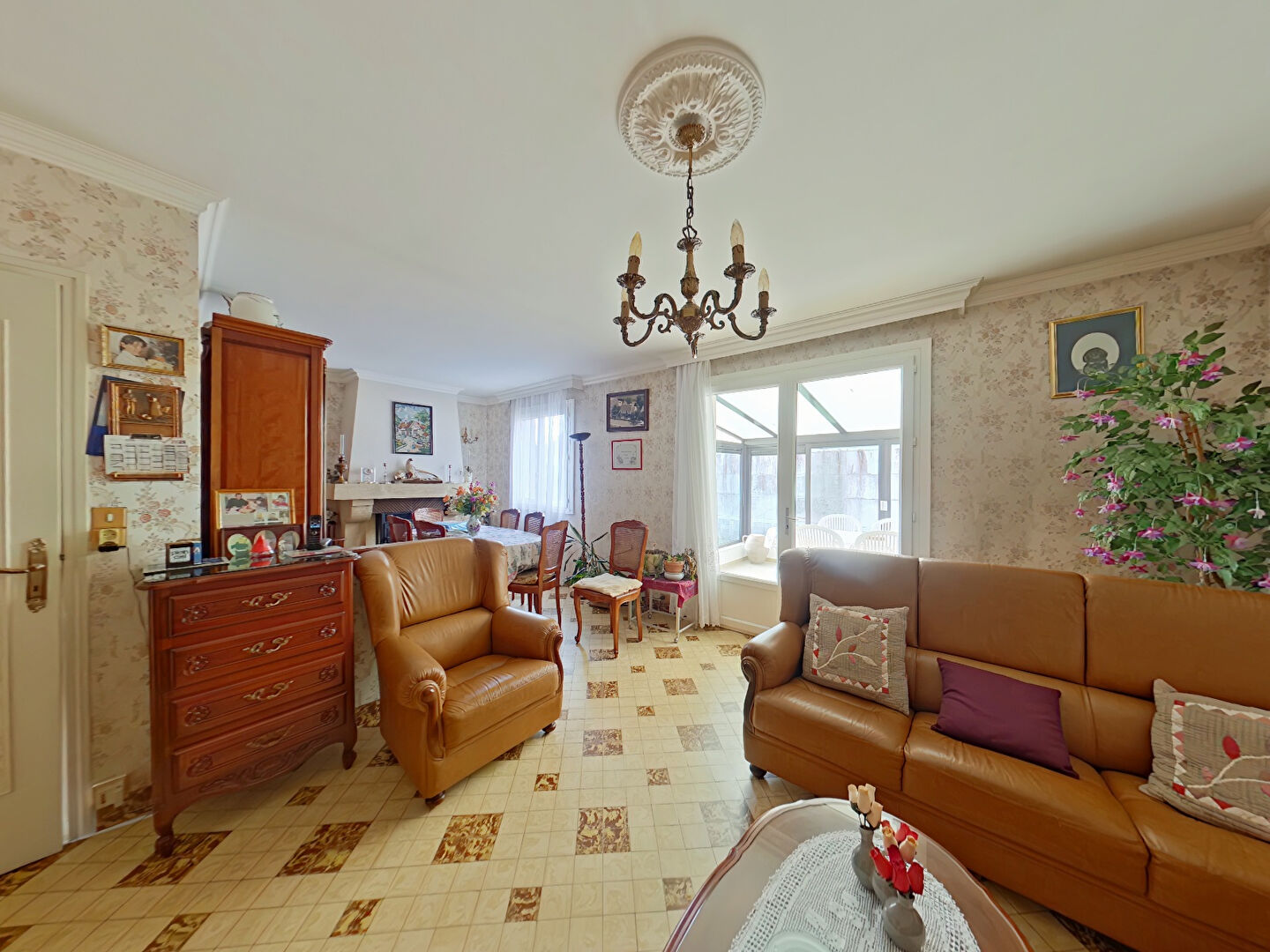 Entrée, cuisine de 9m², pièce de vie lumineuse de plus de 30m² avec cheminée et accès à la véranda exposée Sud, 2 cha...