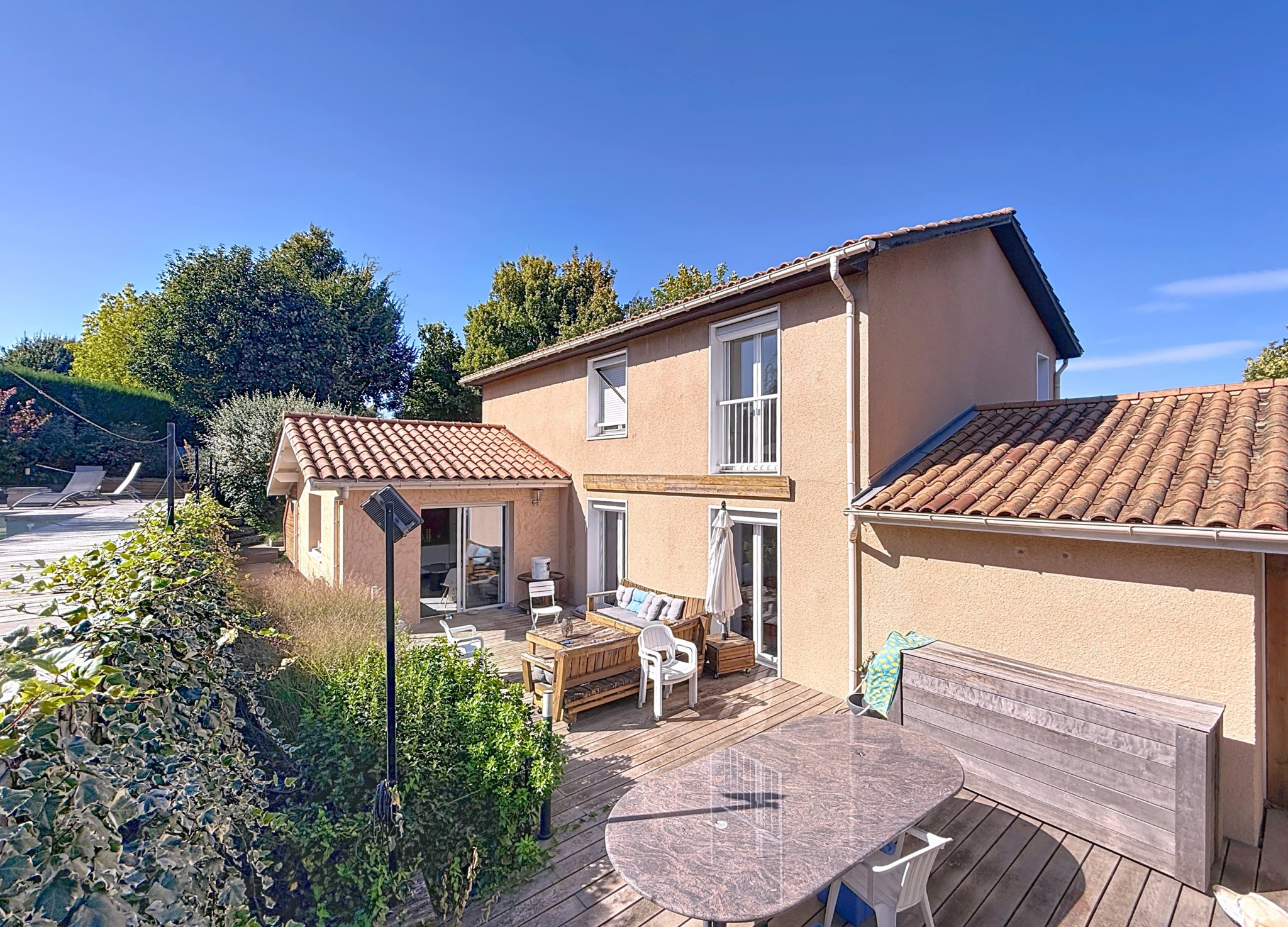 A proximité de la future maison médicale Pôle SanteAlp et des aqueducs romains, belle maison avec piscine d'une surface de 154m2 hors dépendances située sur les hauteurs de Chaponost.