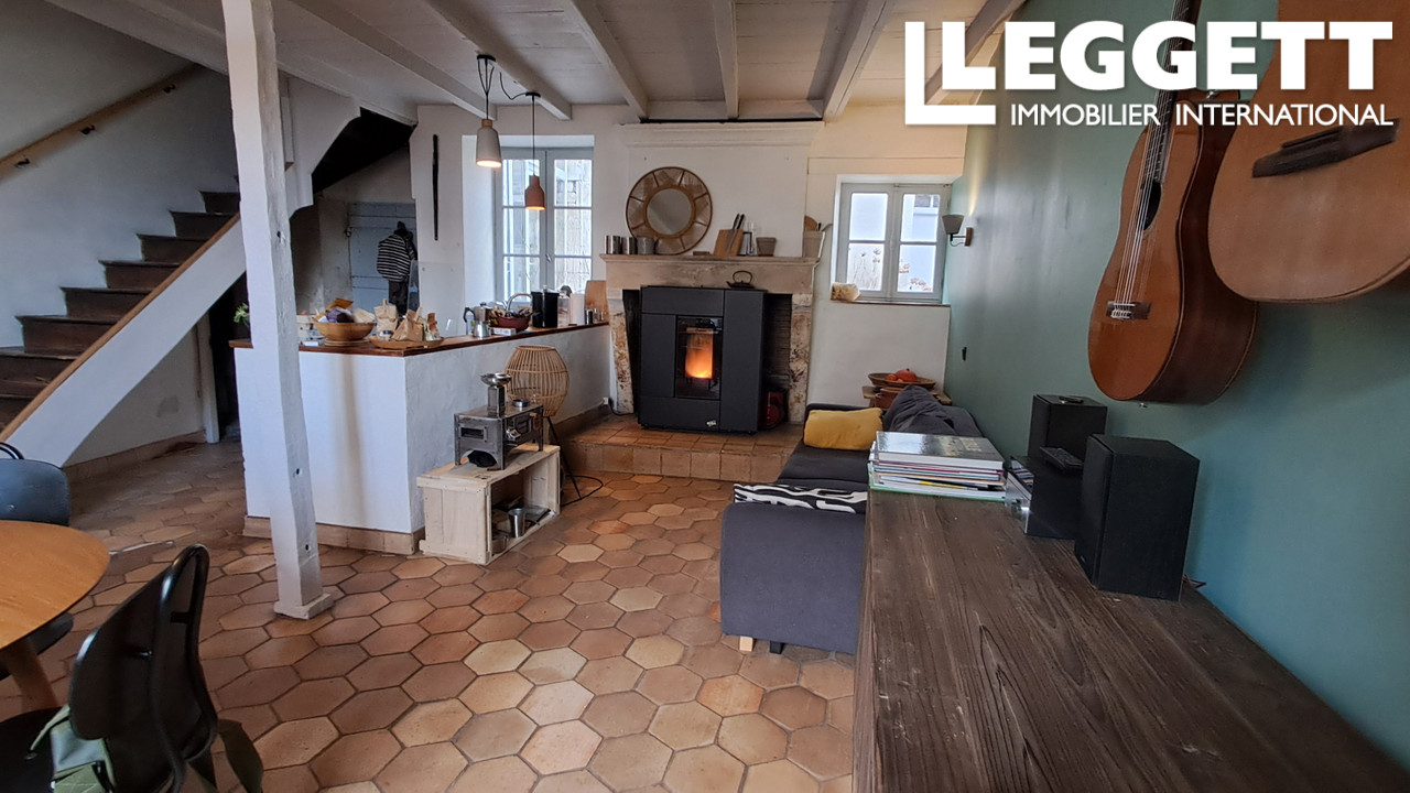 A37596JBR16 - Beau potentiel pour cette jolie maison de bourg, à rafraichir, composée au rez-de-chaussée d'un hall d'entrée, une cuisine équipée, un salon avec insert, wc et une pièce à finir d'amenager. A l'étage un pallier desservant 2 ch...