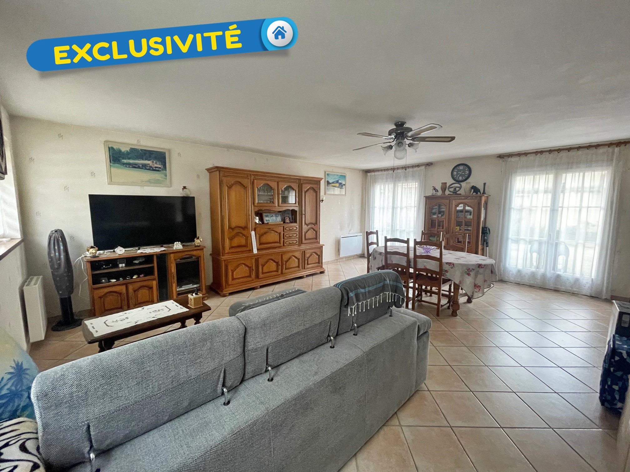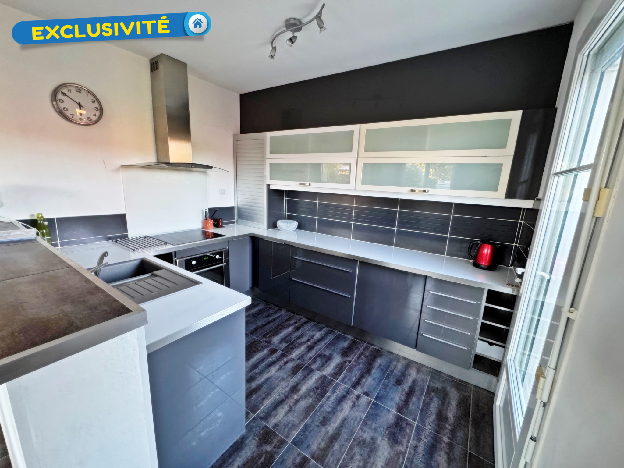 Exclusivité ! Votre Agence Espace Immobilier vous présente une maison d'architecte d'environ 130 m2 comprenant un spacieux séjour salon avec un poêle à bois et une climatisation, cuisine aménagée et équipée, dégagement avec placards, WC séparés avec ...