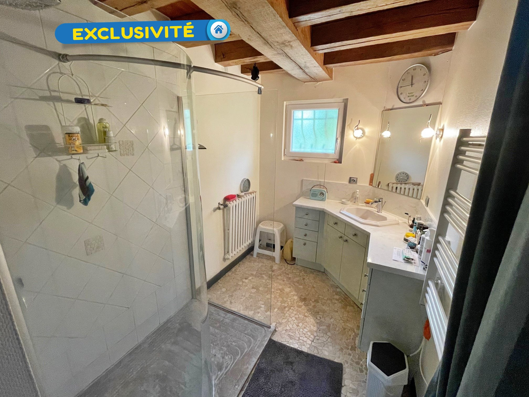 Exclusivité ! En hyper-centre de Châteauneuf-sur-Loire, maison d'environ 67 m2 comprenant au rez-de-chaussée un séjour-salon avec cuisine aménagée, une salle d'eau avec WC.
