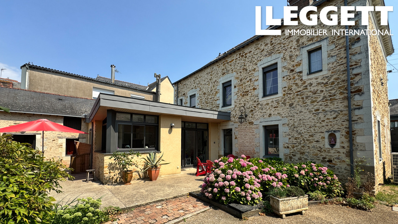 A39539MNL49 - À Champigné, charmante bourgade de l'Anjou, cette élégante maison de ville a été entièrement restaurée avec soin et matériaux de qualité. Elle offre de beaux volumes avec quatre chambres, dont une avec salle de bains attenante, ainsi qu'...