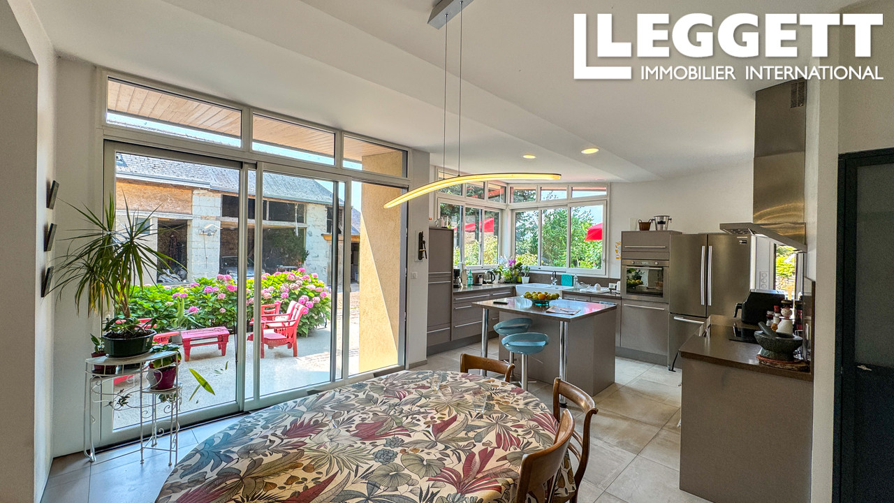 Cette élégante demeure a été édifiée au cœur d’une petite ville de caractère des bords de Sarthe entre bocages vallonnés et douceur angevine, à la croisée des grands axes qui relient Ange...