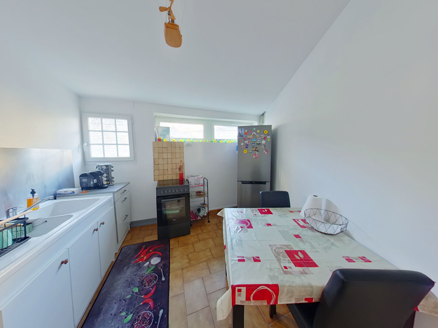 La cuisine aménagée, fonctionnelle, s'ouvre sur une be...