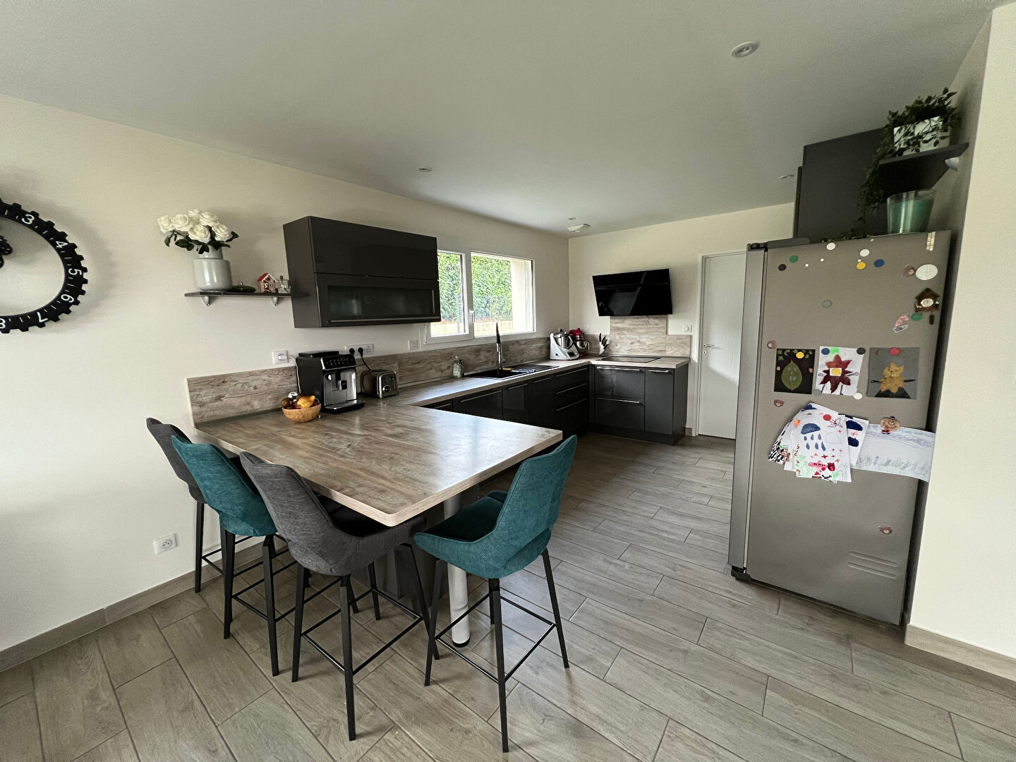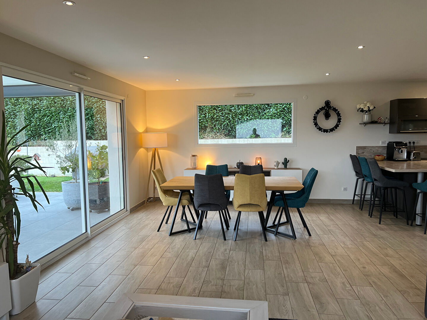Maison récente RT 2012 dans un environnement très calme . Très bien entretenue aussi bien intérieur qu'extérieur . Cuisine équipée de 10,27 m2 ouverte sur salon séjour d'environ 43 m2 donnant accès sur terrasse recouverte d'une pergola bio cli...
