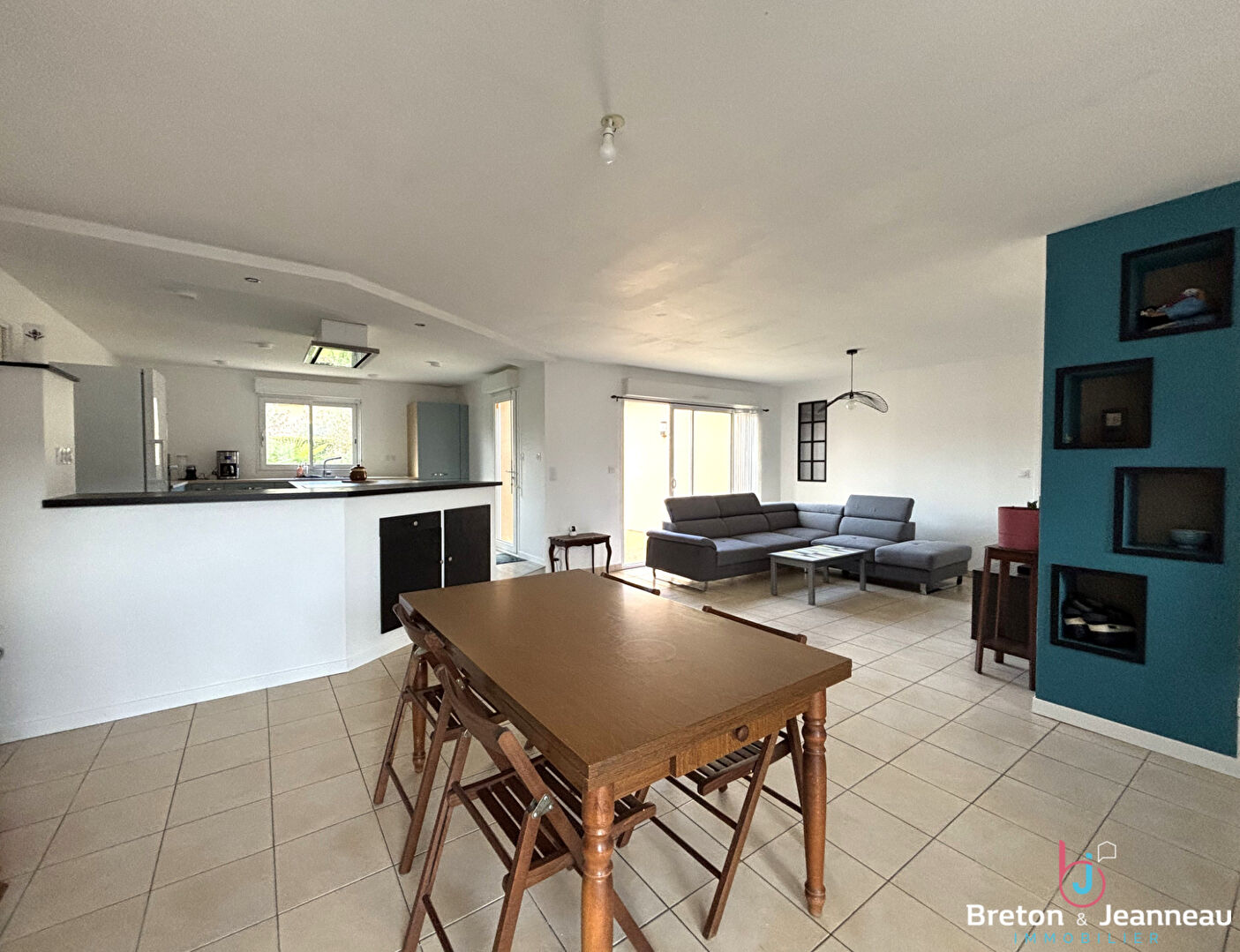 NOUVEAU sur la commune de CHEMAZÉ, entièrement de PLAIN-PIED, cette agréable maison lumineuse offre une cuisine aménagée équipée ouverte sur séjour salon d'environ 53 m², un couloir desservant trois chambres dont une avec dressing, salle d'eau, toile...