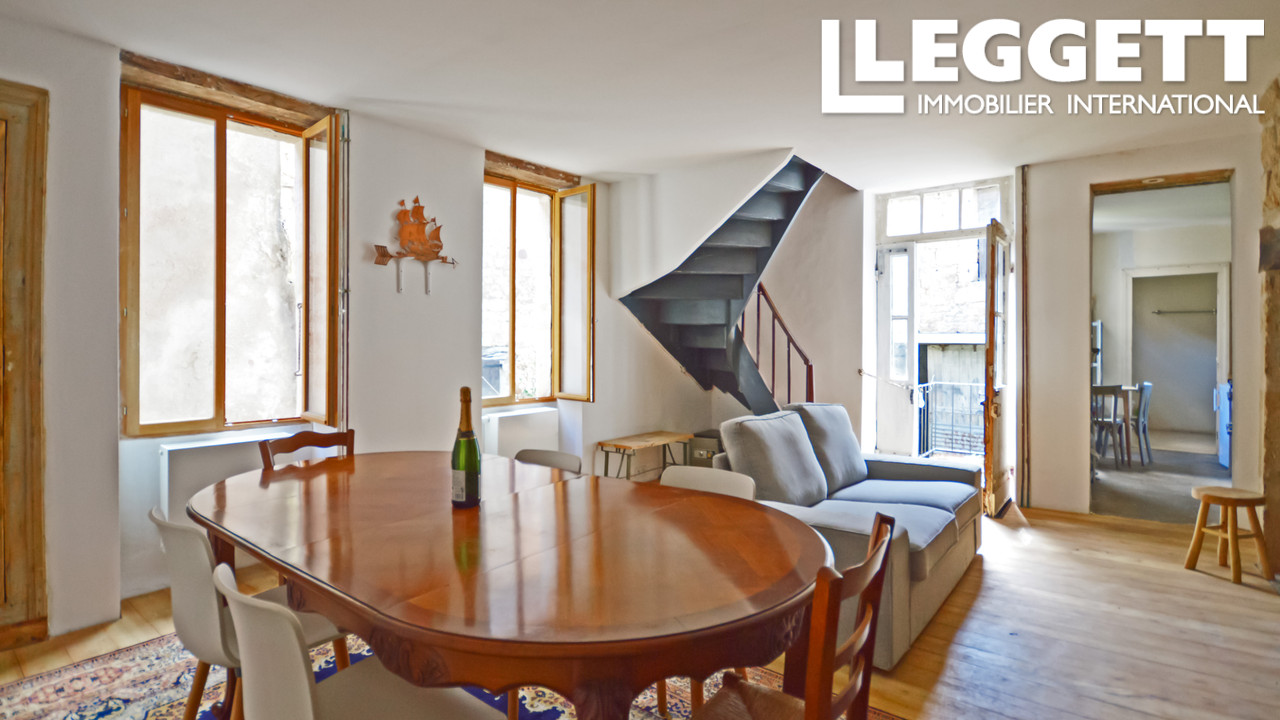 A30391SUG24 - Deux maisons de village séparées par une ruelle étroite, l'une habitable mais simple avec une seule chambre, et une terrasse donnant sur les marches en pierre menant à une maison voisine plus ancienne sans doute du 16ème siècle, qui est plus...