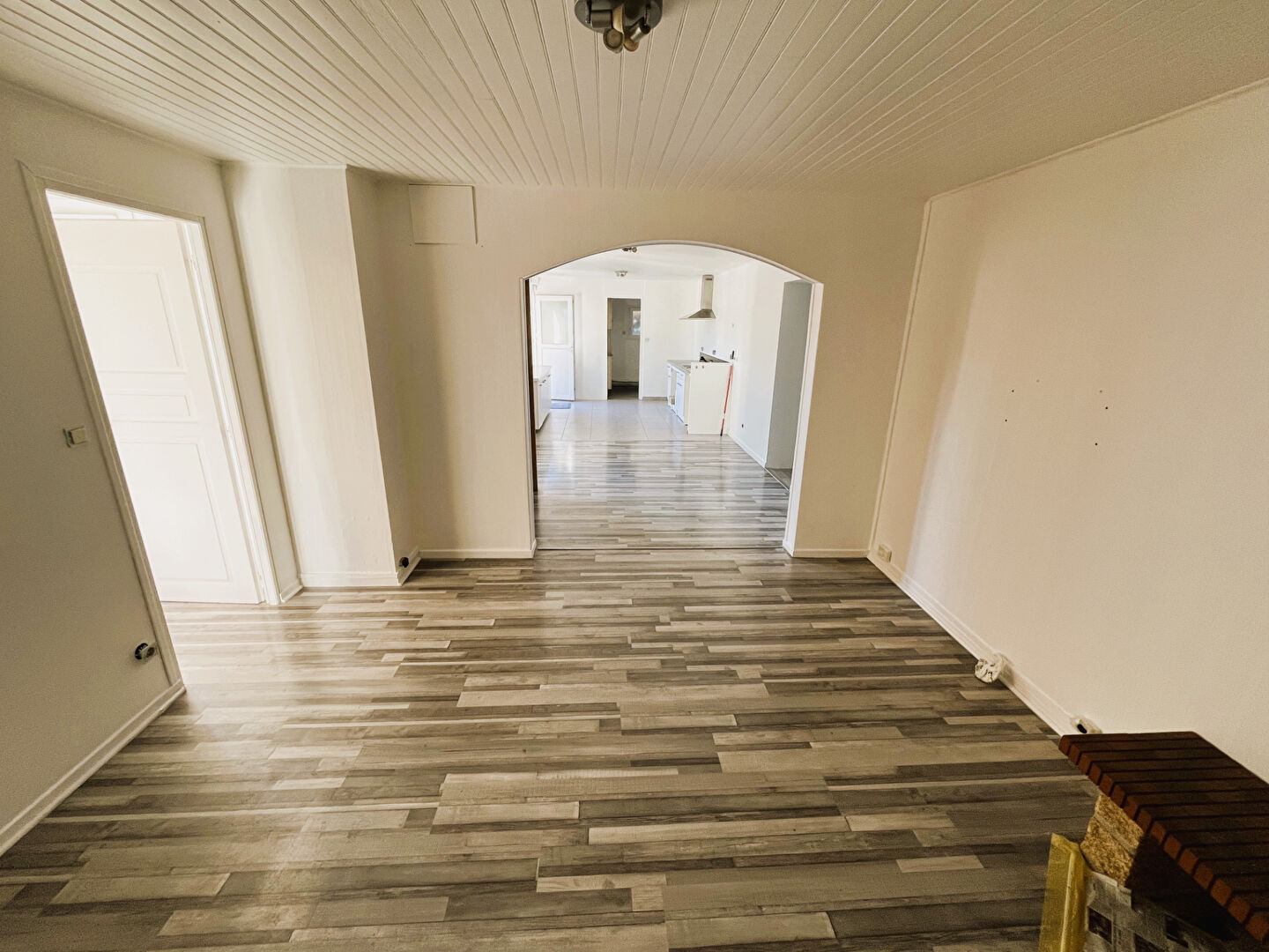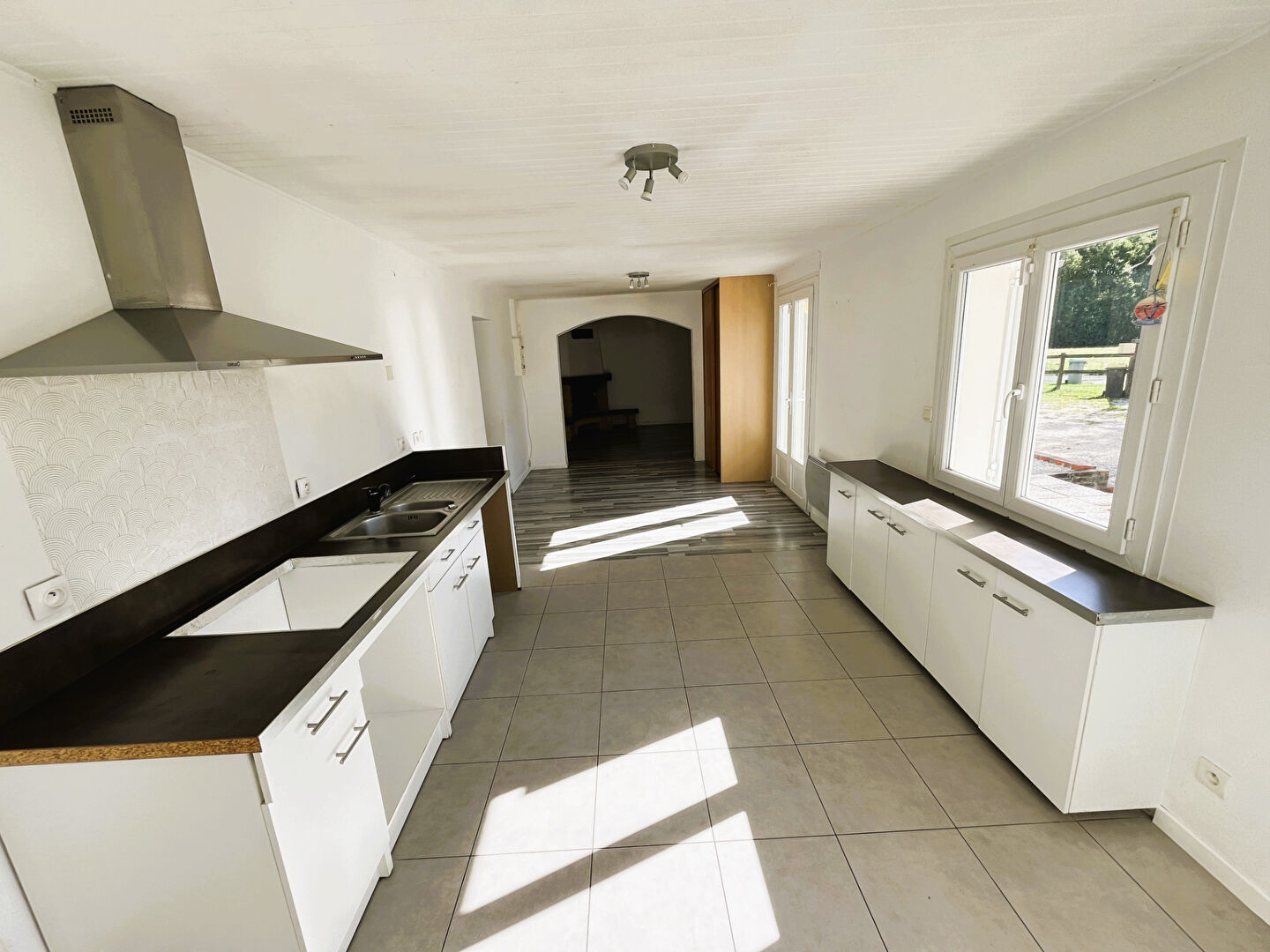 Pavillon de 82.7 m² comprenant cuisine aménagée équipée ouverte sur séjour salon avec cheminée insert, trois chambres, salle d'eau, WC, et, cellier.