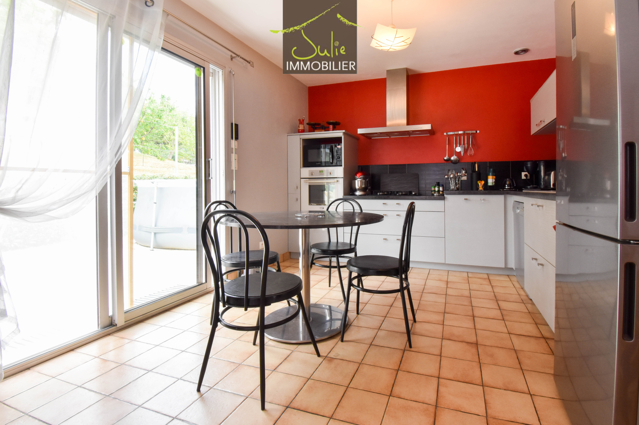 Dès l'entrée, une belle pièce de vie lumineuse avec cuisine ouverte invite à la convivialité, tandis qu'un bureau cosy et une salle d...