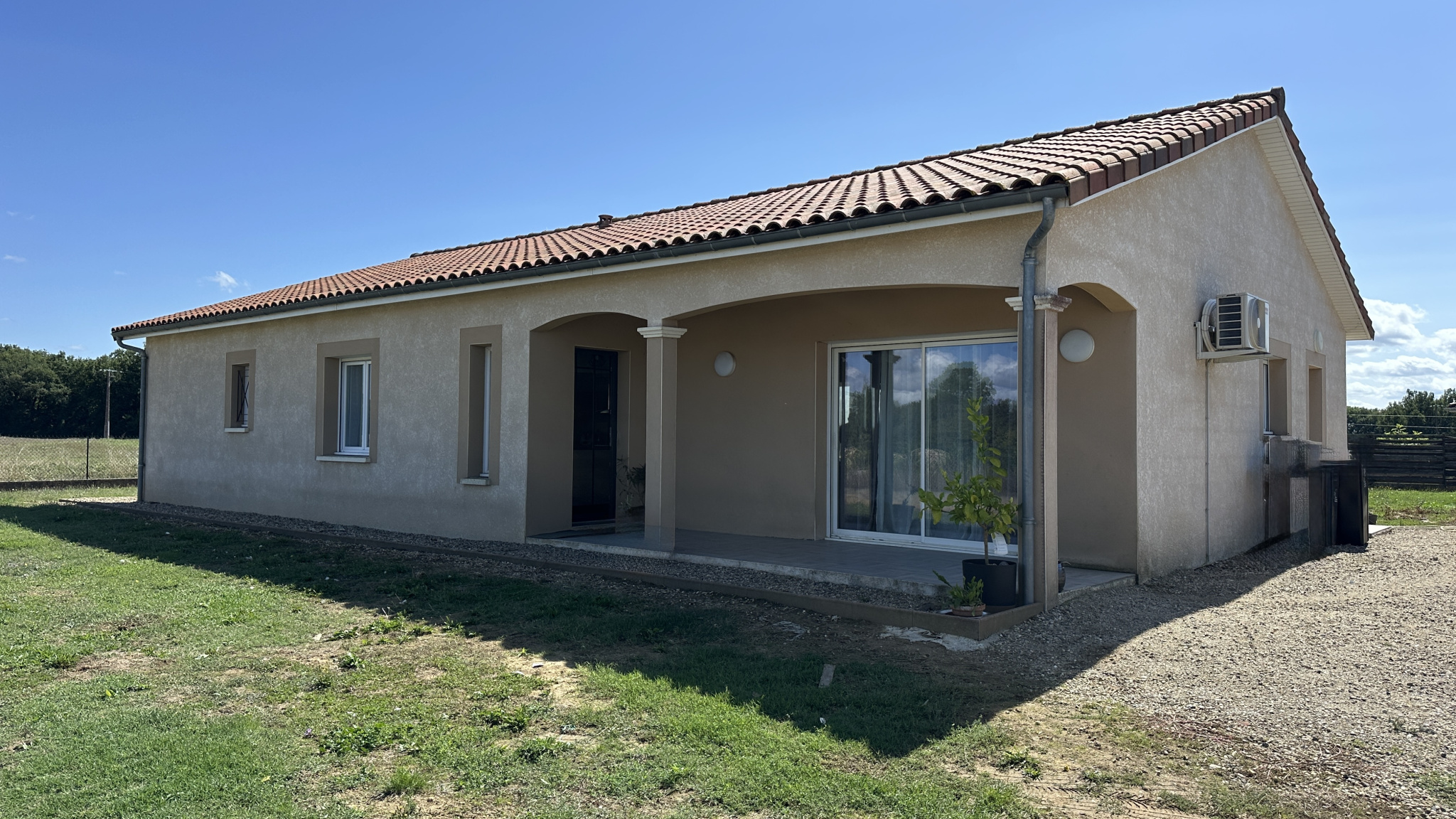 EXCLUSIVITE : Dans un secteur calme , à 5 minutes de Clairac ,cette villa contemporaine de 2015 de plain-pied construite sur un terrain clos de 1600 m2 vous propose une pièce de vie d'environ 60 m2 avec cuisine américaine équipée qui ouvre sur une belle v...