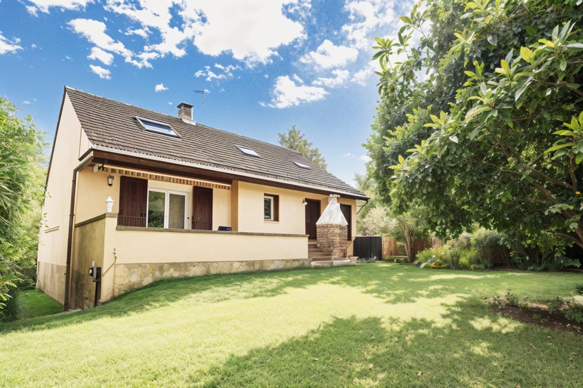 CLAYE-SOUILLY quartier de Souilly résidentiel pavillon de 95 m2 (surface totale 123,37) sur un terrain arbore de 302 m2 se composant d'une entrée, une cuisine aménagée et équipée avec accès au garage et coin chaufferie/buanderie, séjour avec cheminée, wc,...