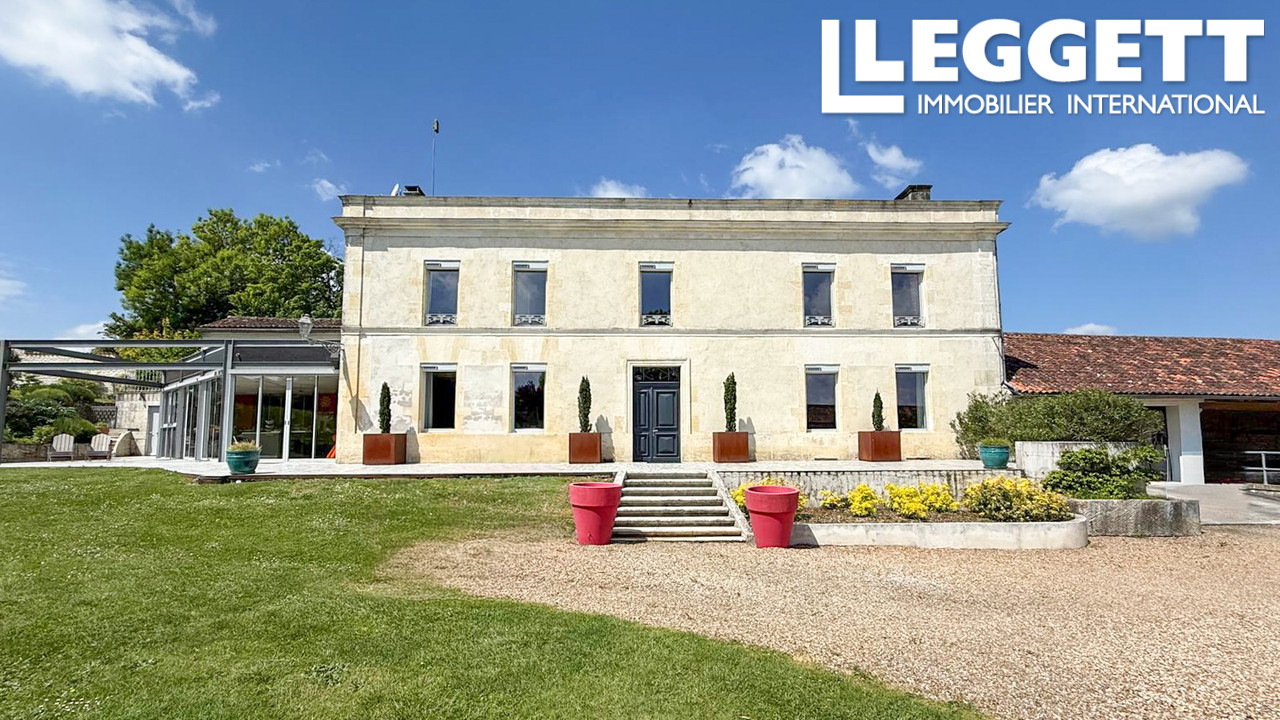 A41639JMR16 - Située derrière de majestueux portails et enveloppée par les vignes de la « Grande Champagne » du Cognac, cette magnifique propriété rurale, à dix minutes du centre-ville séduit dès les premiers instants.