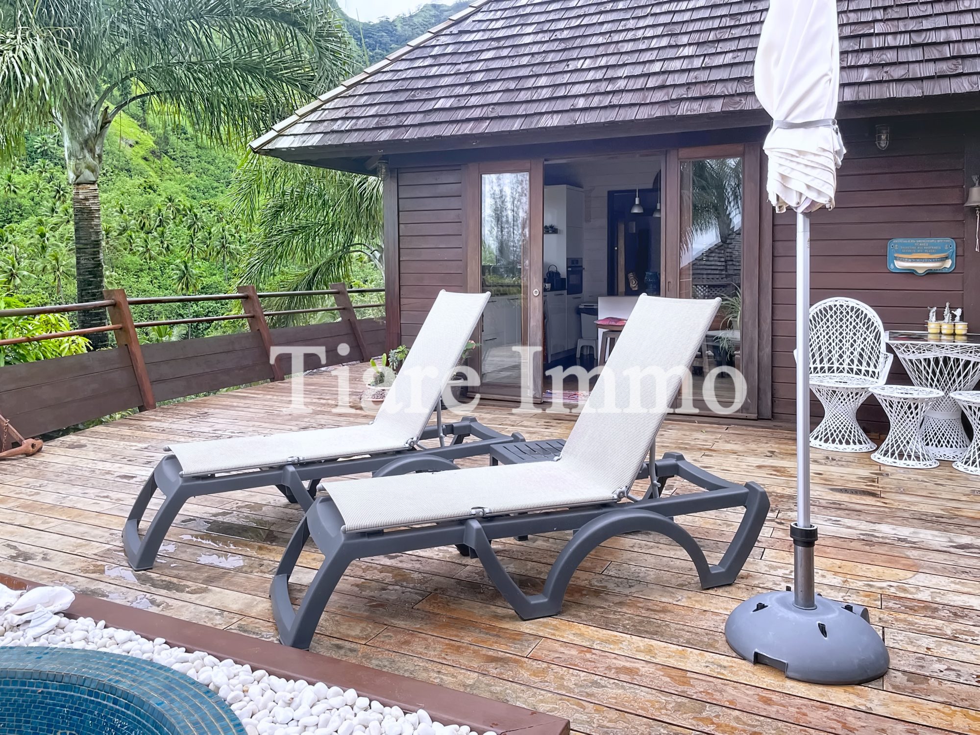 Vend maison sur deux niveaux a PAMATAI HILLS avec un jardin cloturé et arboré vue sur mer et MOOREA.