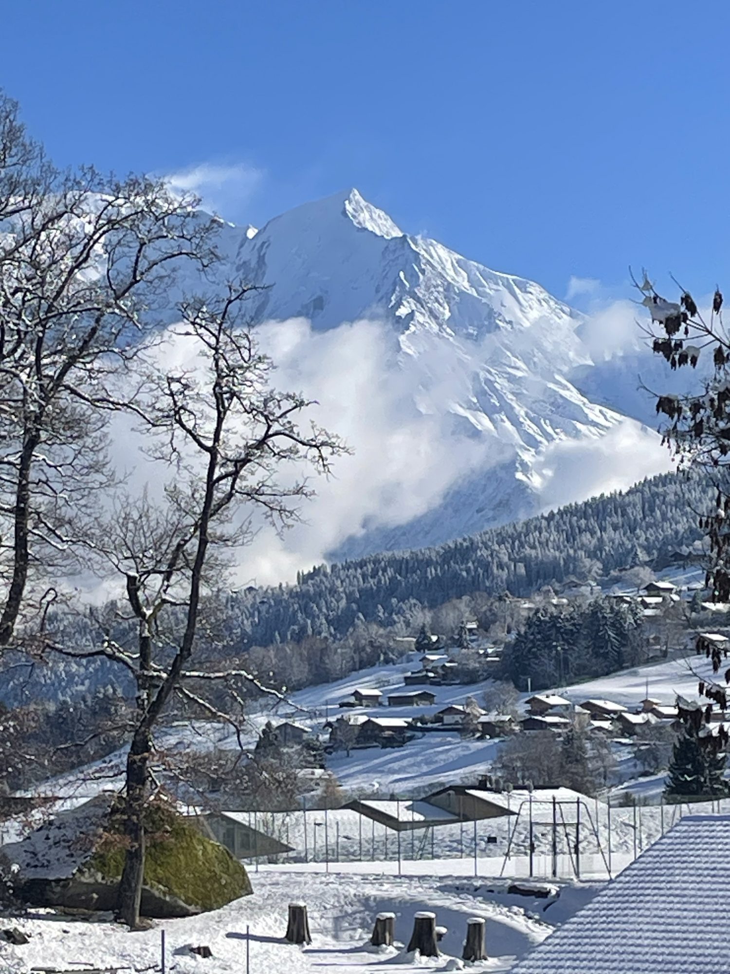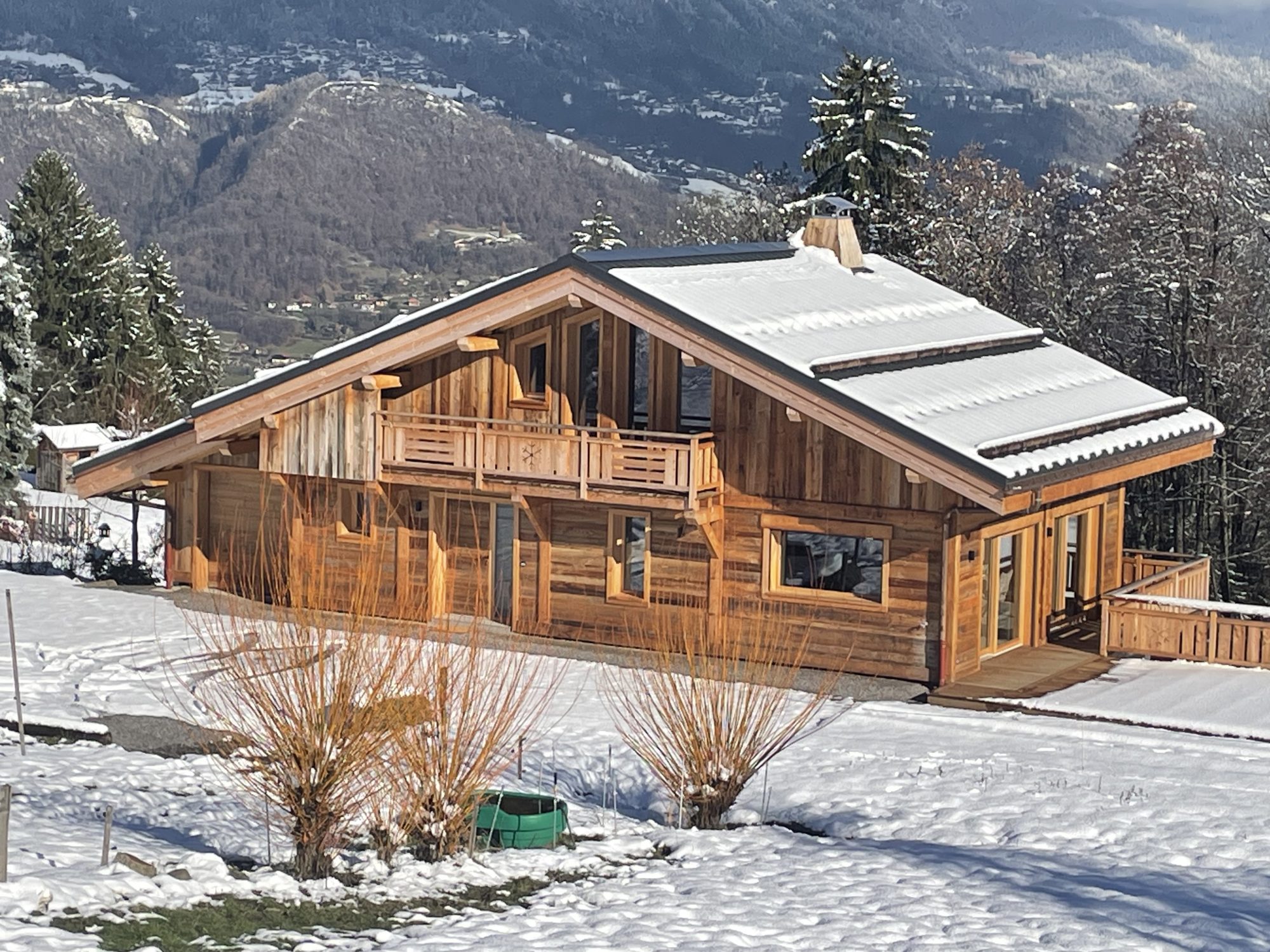 À quelques minutes de Megève, cette propriété séduit par ses finitions soignées et sa vue exceptionnelle sur le Mont-Blanc.