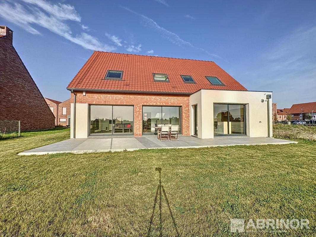 Emplacement idéal à Comines Sainte Marguerite, en bordure de campagne pour cette maison d'architecte individuelle de 2023 de s-p-pied composée d'une grande entrée donnant accès au salon/séjour lumineux avec vue sur le jardin, cuisine équipée, cellie...