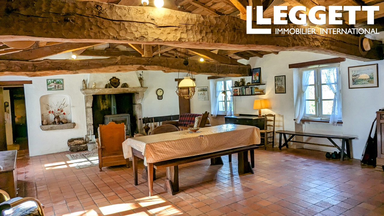 - Pièce de vie avec un poêle à bois.