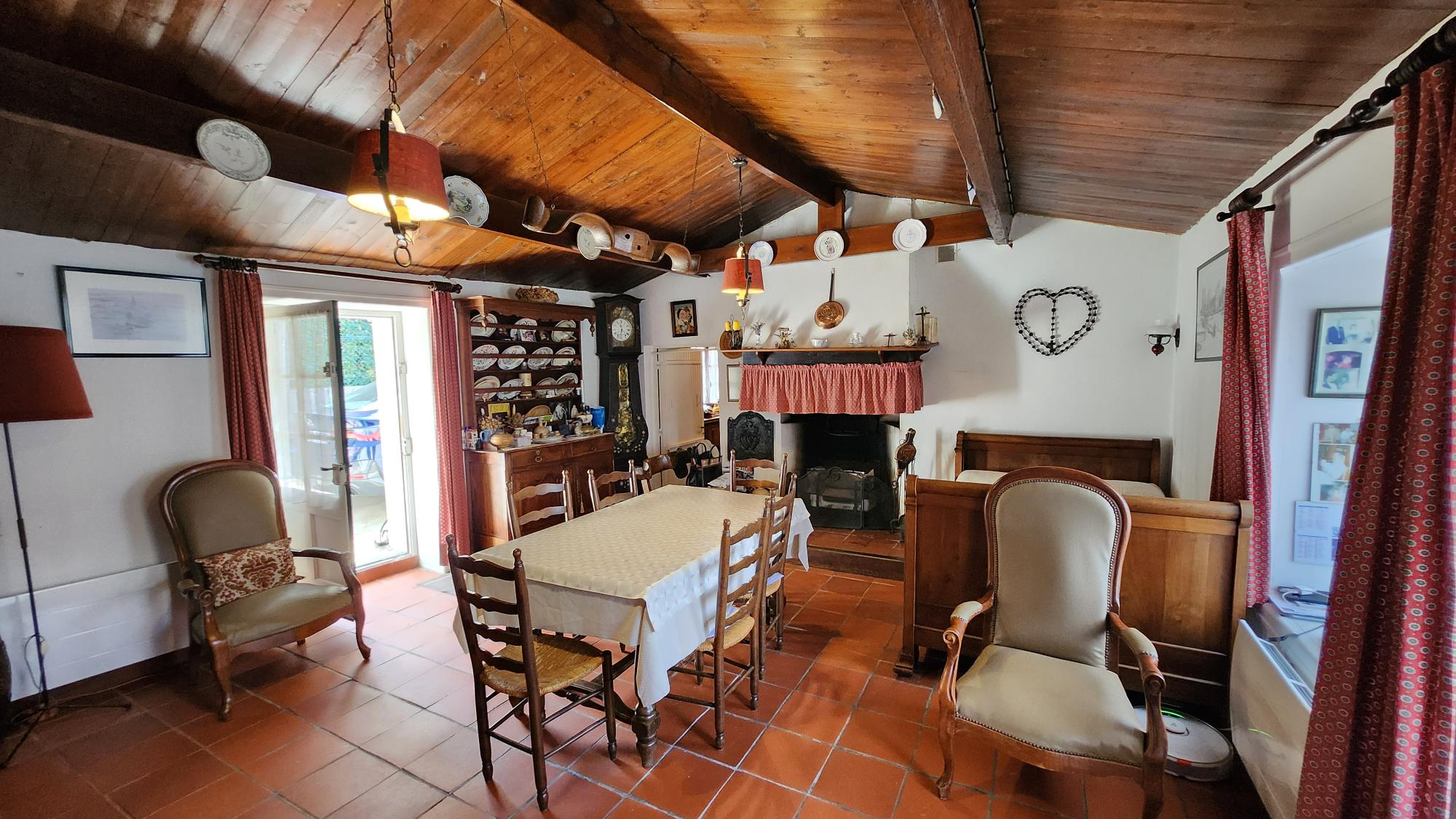petite maison de caractère en hameau, proximité du centre. elle offre un bel espace de vie avec cheminée à l'ancienne, cuisine séparée, deux chambres, salle d'eau avec WC. confort électrique, exposition sud. beaucoup de charme !