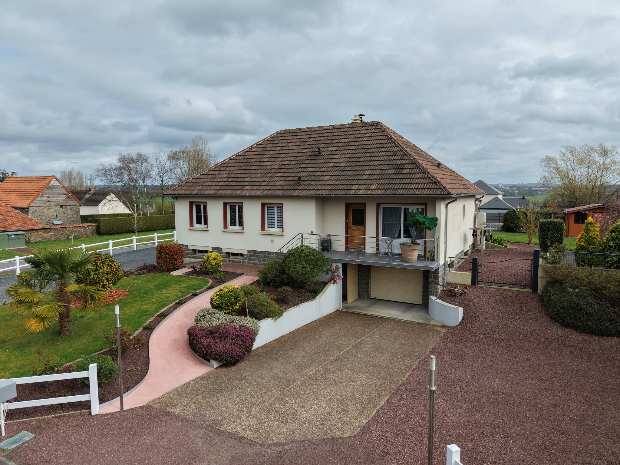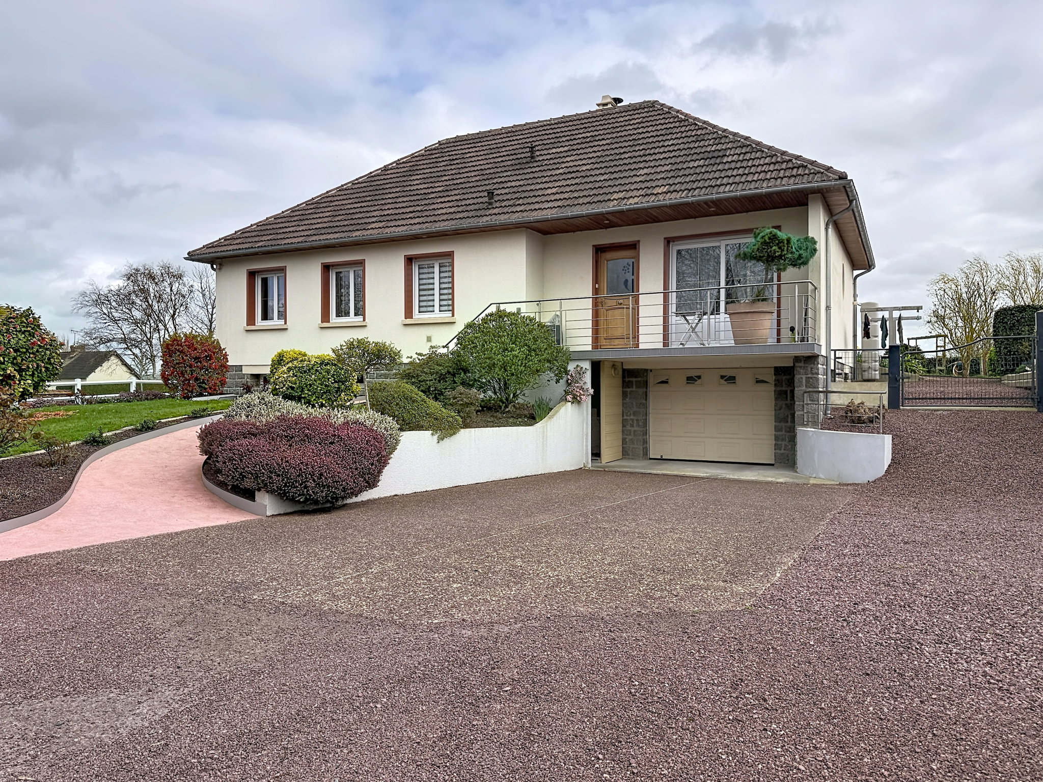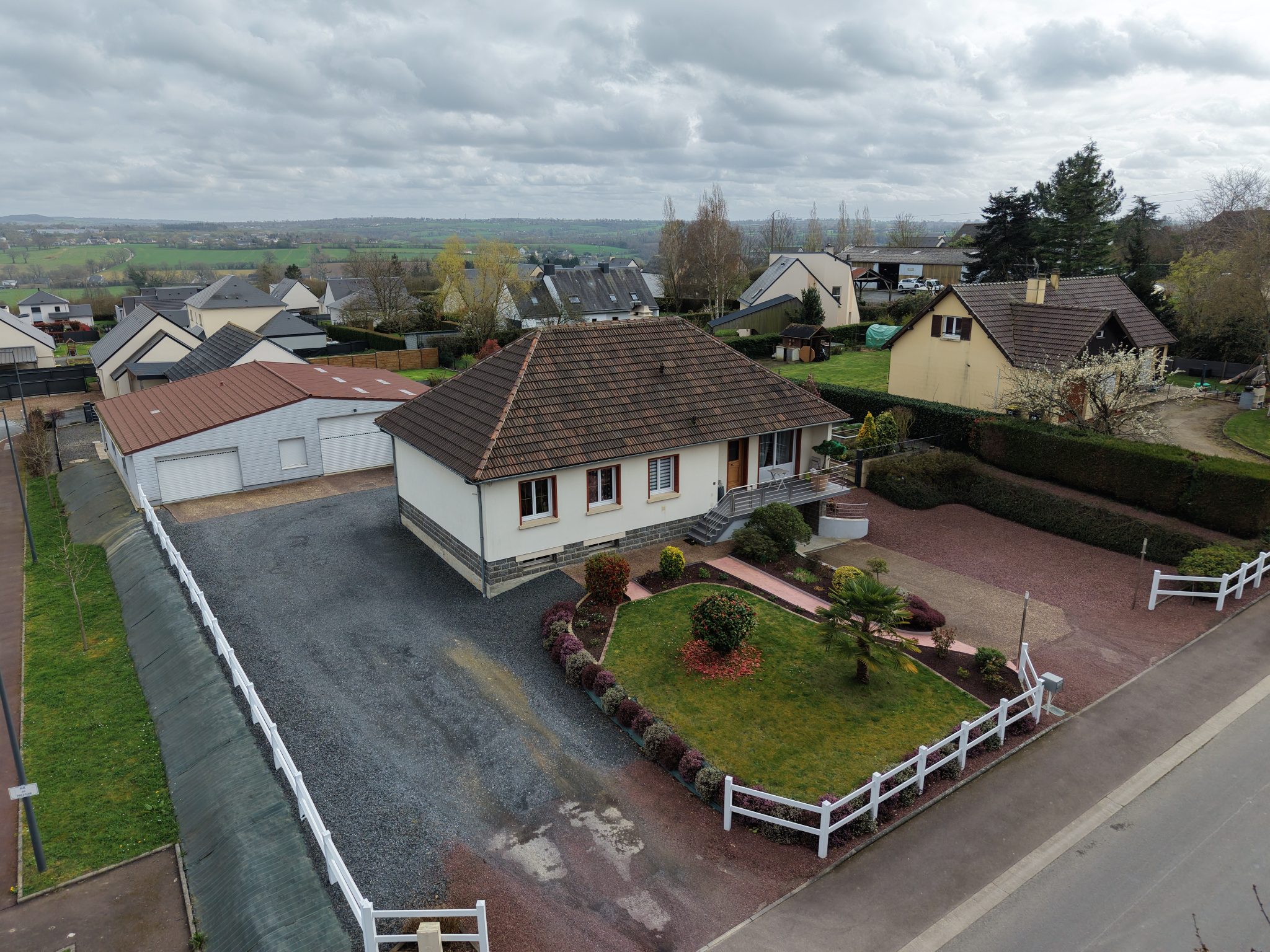 CONDE SUR VIRE, à 3 minutes du bourg dans un environnement calme, le CABINET FAUDAIS vous présente ce pavillon sur sous-sol avec garage suppélementaire et bâtiments à usage de stockage, sur une parcelle de 1766 m2.