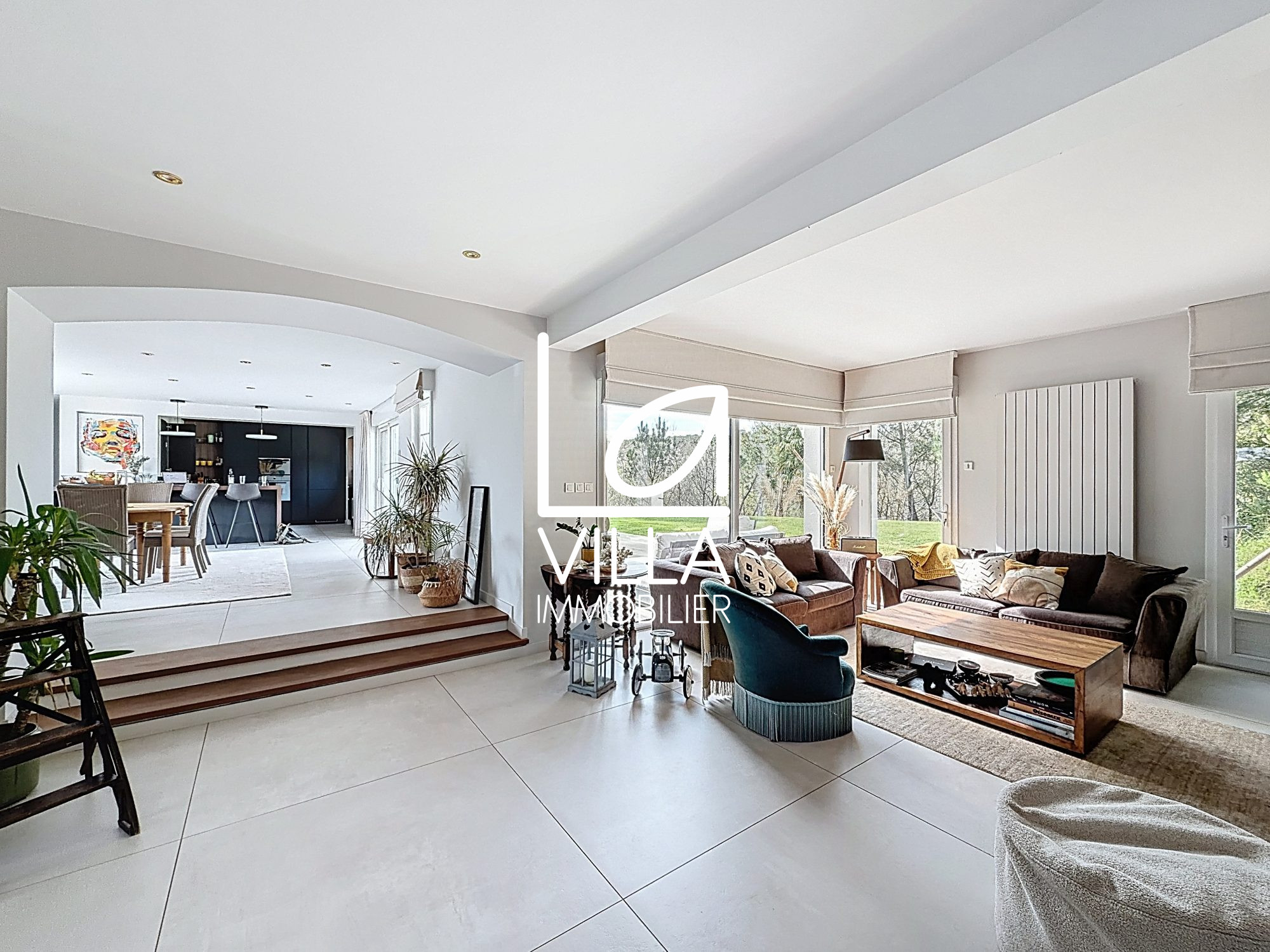 Elle se compose au rez-de-chaussée d'une entrée avec vestiaire, d'un salon / séjour de 48 m² donnant acc...