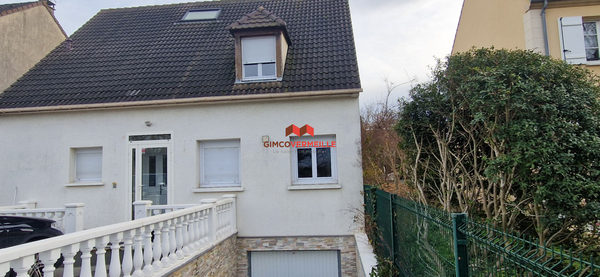 SECTEUR FIN D'OISE proche de la GARE RER A ET SCNF ! MAISON INDIVIDUELLE de 145 m² utiles édifiés sur 270 m² environ de terrain proche toutes commodités écoles, crèche, collège Montaigne, bus et gares. Elle comprend au rez-de-chaussée entrée, GRAND SEJO...