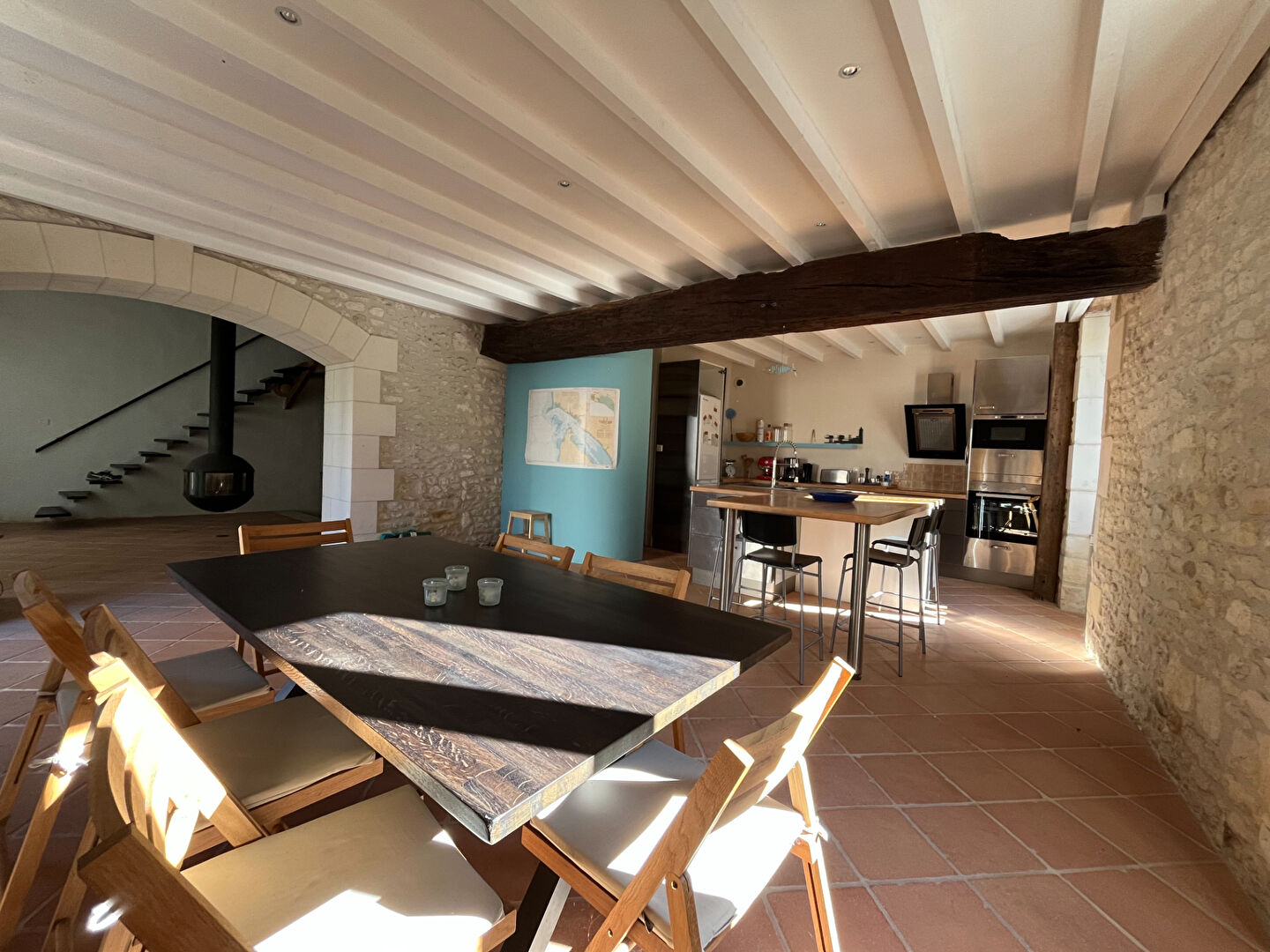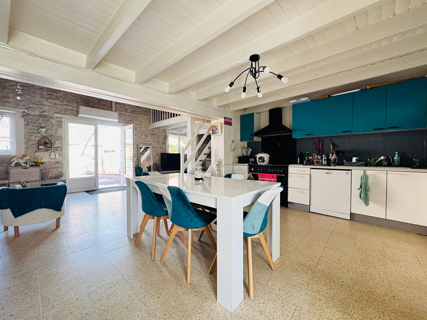 Ses murs en pierre apparente, sa grande pièce de vie lumineuse avec la cuisine m...